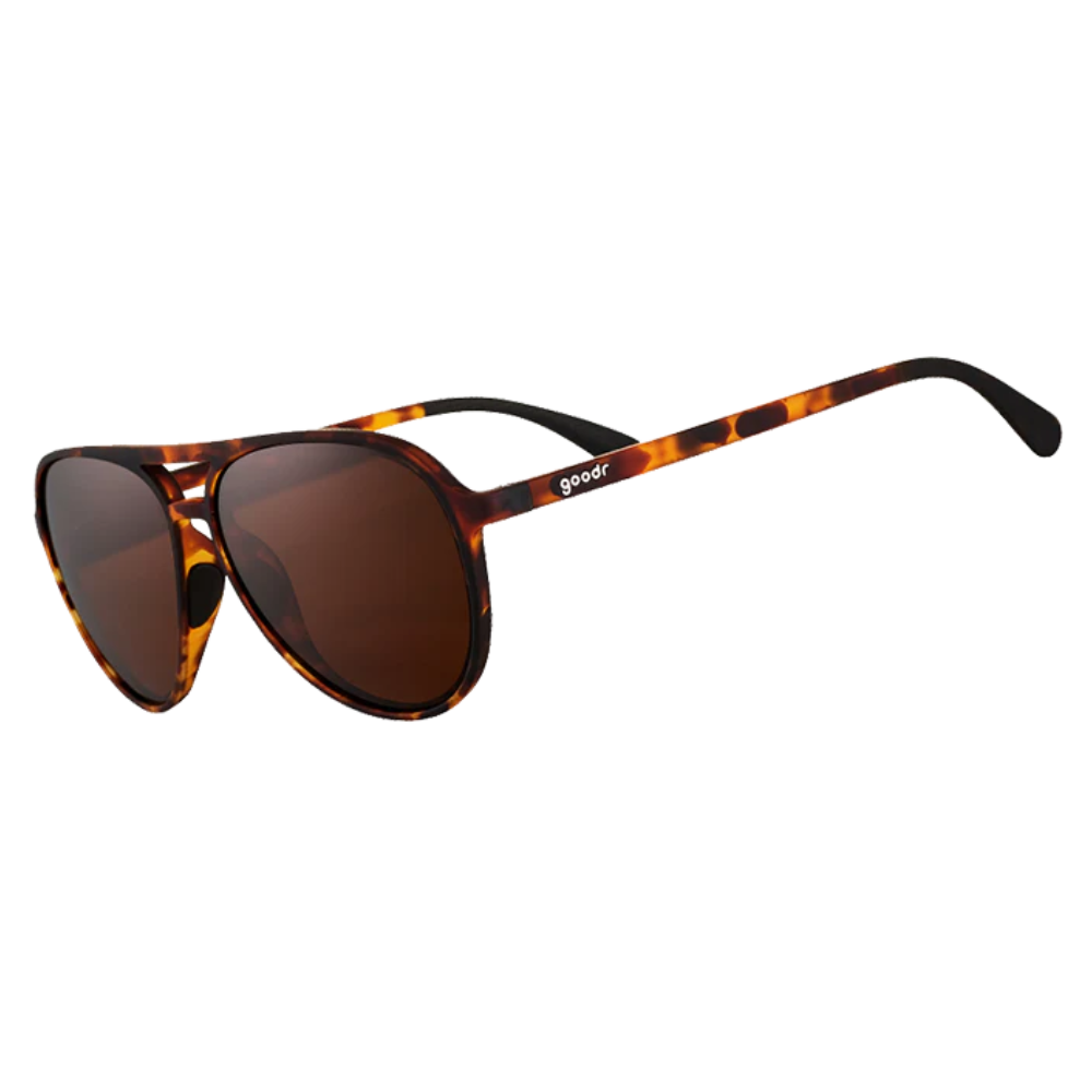 Snug, lightweight tortoise shell frame with a comfortable fit that prevents bouncing whether you're flexing pecs or flying jets.