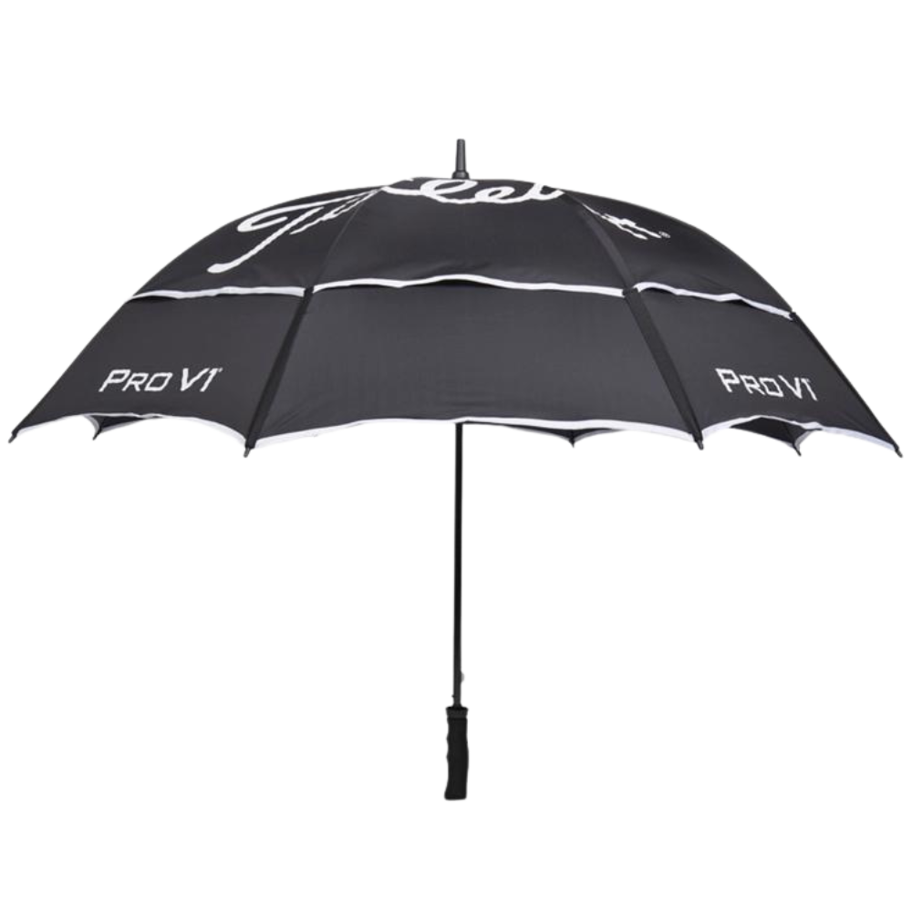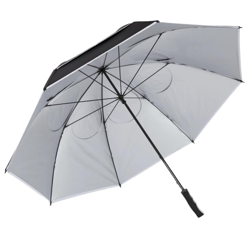 The durable Tour Double Canopy Umbrella provides 68 inches of coverage from rain and sun, delivering needed protection out on the course.