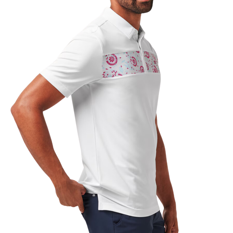 - Signature TravisMathew logo on back yoke