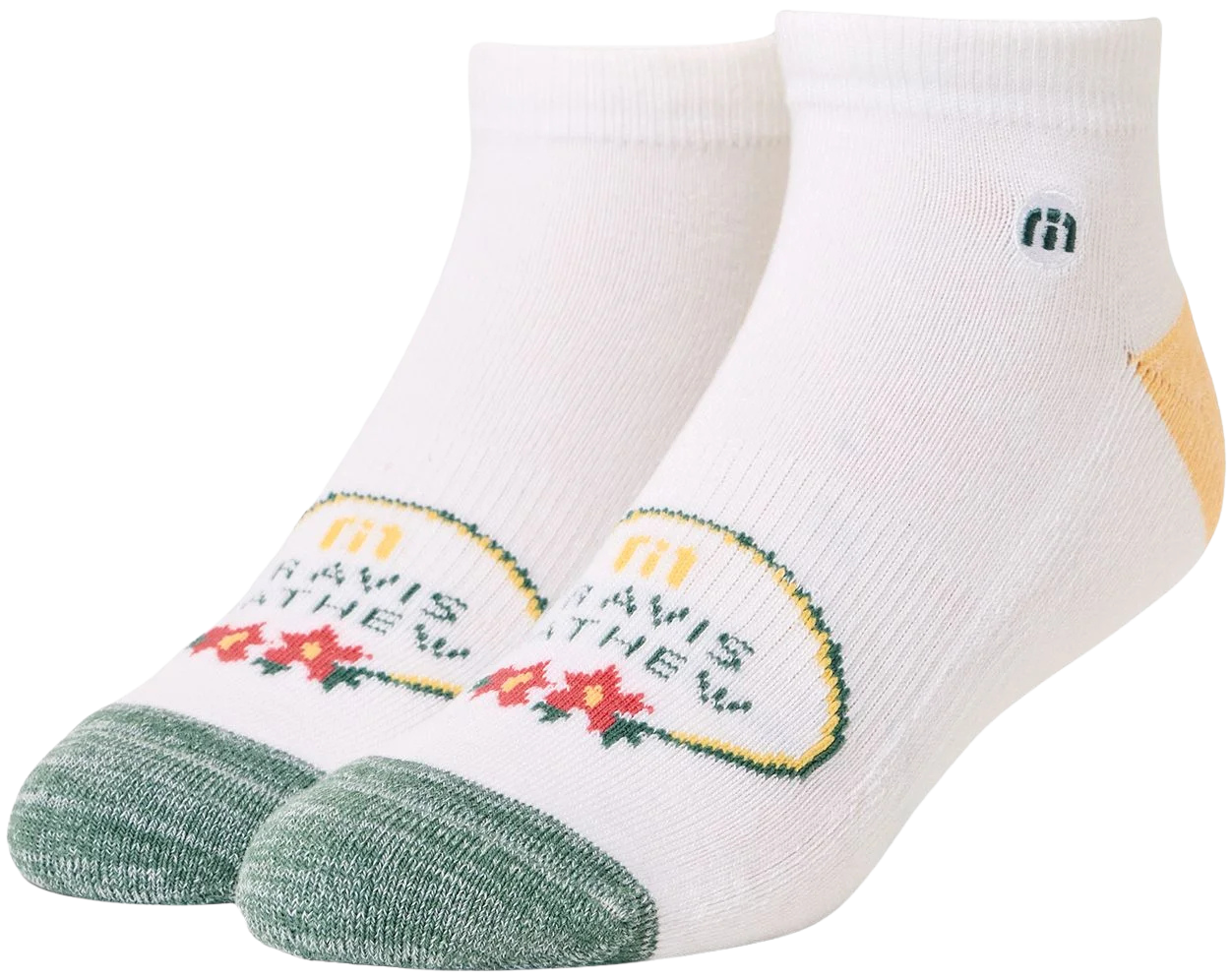 The TravisMathew Lone Palm Ankle Golf Socks showcase a TravisMathew "Our Favorite Time of The Year" logo, letting you stand out on and off the course. Stress-zone cushioning and elastic arch support keep your feet comfortable from the first tee to the last green.
