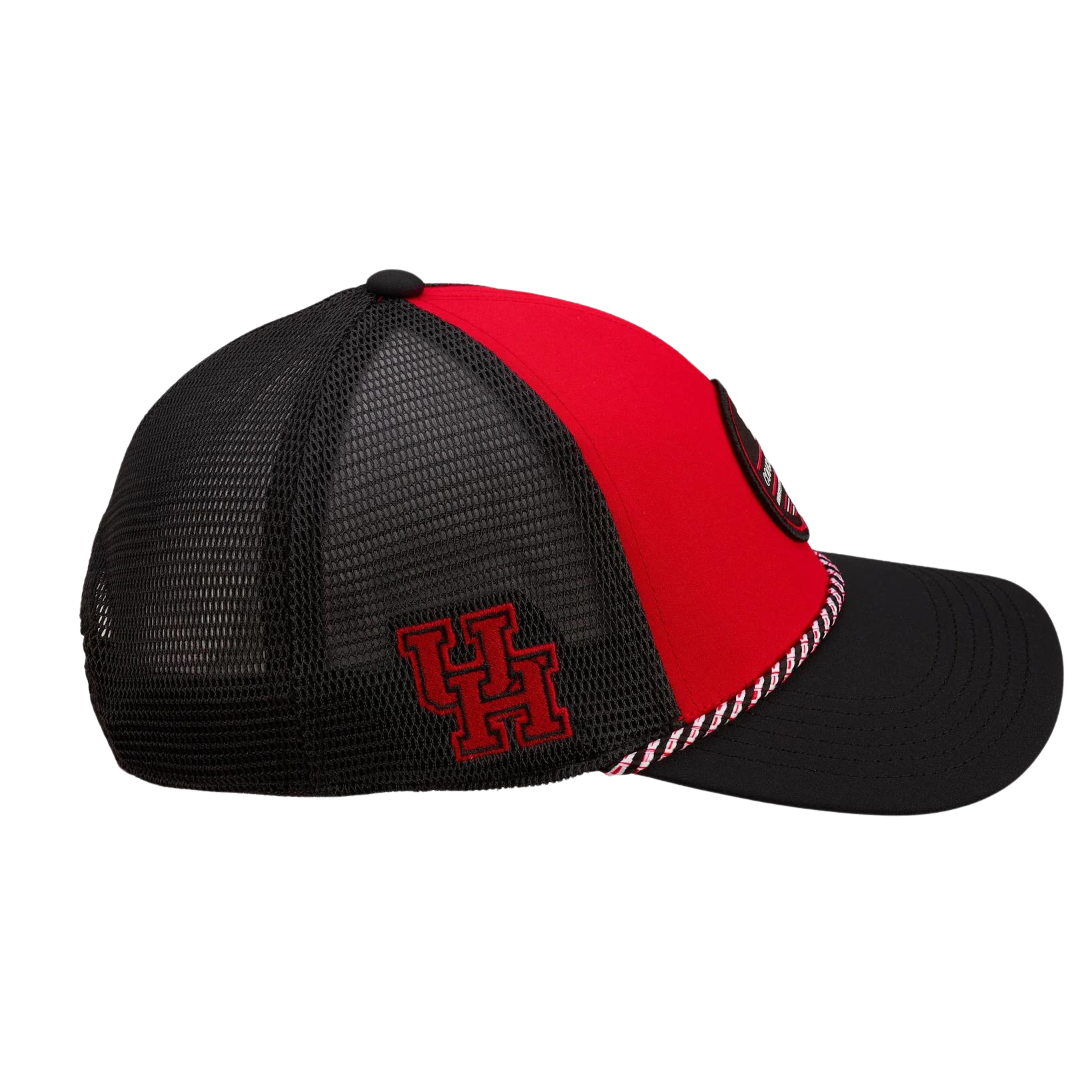 "Who's House? Coogs House!" Celebrate the Cougars with our Houston Gamer collegiate headwear. Built with premium quality materials, this eye-catching red and black hat features a black brim and black mesh for a cool, breathable fit. The front of the hat boasts a patch with a tribute to the Cougars, and the school symbol is proudly displayed on the right panel. With an adjustable snapback to ensure a perfect fit every time, this stylish hat is a perfect way to showcase your team spirit and an ideal addition to any casual wear.