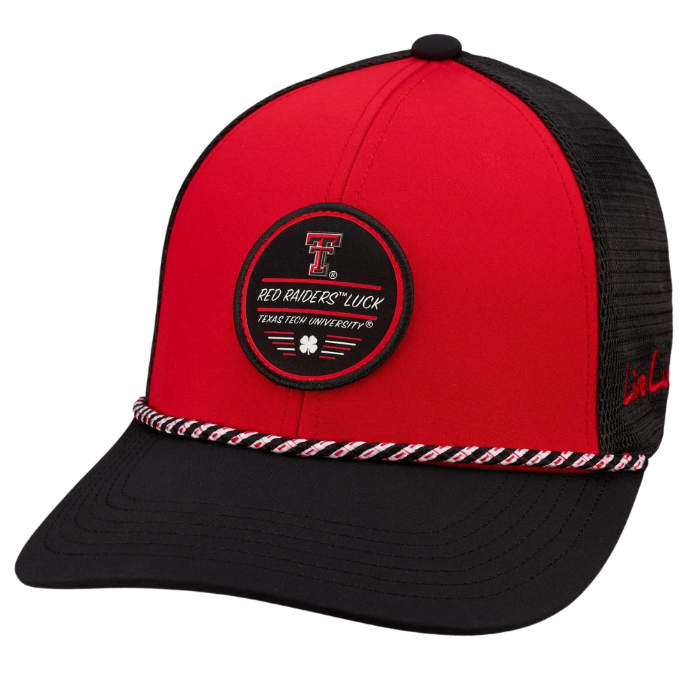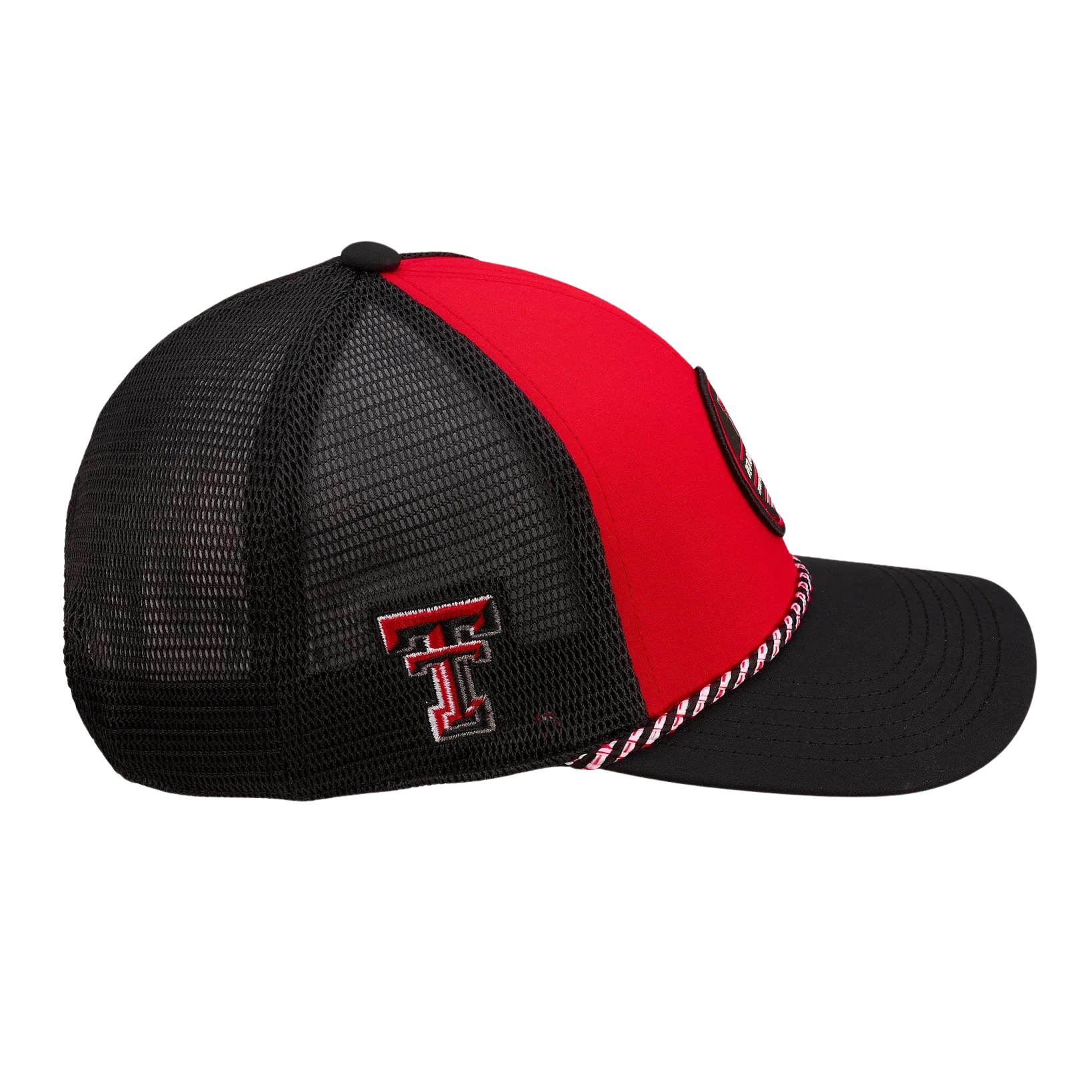 Guns, up! Prepare for victory with our Texas Tech Gamer collegiate headwear. Built with premium quality materials, this eye-catching red and black hat features a black brim and matching mesh for a cool, breathable fit. The front of the hat boasts a patch with a tribute to the Red Raiders, and the school symbol is proudly displayed on the right panel. With an adjustable snapback to ensure a perfect fit every time, this stylish hat is a perfect way to showcase your team spirit and an ideal addition to any casual wear.