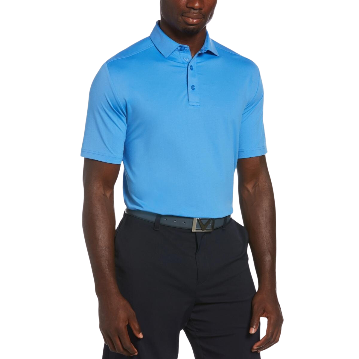 This Callaway men's golf shirt brings all sorts of versatility to your golf wear wardrobe. Crafted for on-course performance and comfort, it is designed to let you play your best game without distraction. Swing Tech™ technology provides added stretch to the shoulder seams for a full range of motion for a smooth swing, round after round. Built-in Opti-Dri™ moisture-wicking technology pulls sweat away from the body, and ventilated fabric keeps you cool and comfortable. Great for sunny days on the golf course, the polo golf shirt also features sun protection that guards against harmful UV rays. The solid polo shirt features a slight textured appearance and classic self collar and three-button placket. This simple, classic style makes it easy to pair with your golf pants and shorts. Geared to your busy lifestyle, the collared golf shirt is machine washable for easy to care, so you can spend your time outside on the links. Available in a range of regular sizes as well as Big & Tall for golf shirts for big guys, it comes in a relaxed, classic fit. If you're looking for the best golf shirt for men, this timeless Callaway polo shirt brings depth to your collection of golf apparel.