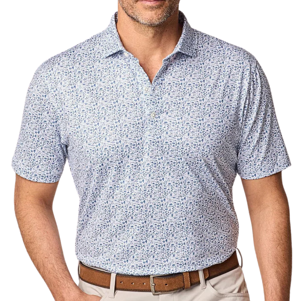 - Printed performance jersey 3-button polo