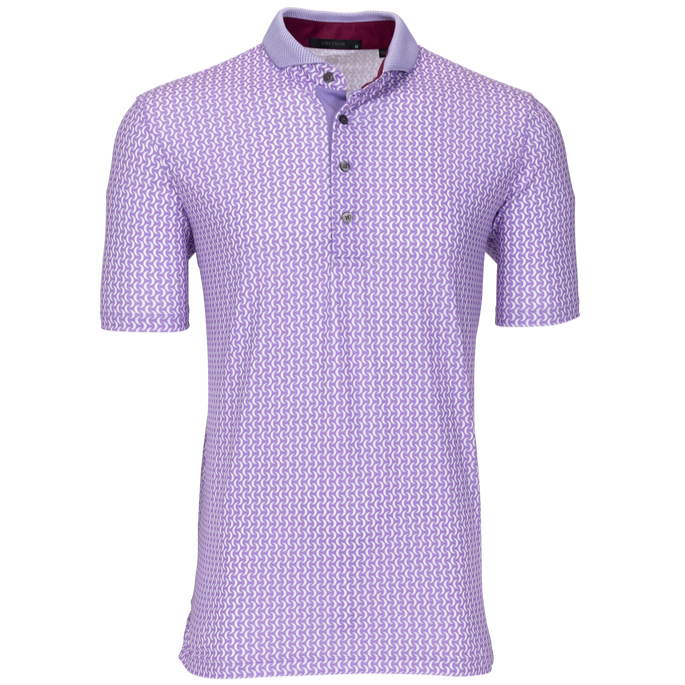 Constructed with an antimicrobial and moisture-wicking qualities, the moonshine printed golf polo is designed to provide sophisticated comfort and freedom of movement on and off the golf course. Featuring a signature Greyson all-over pattern. Finished with a four-button placket and a jacquard knit collar.