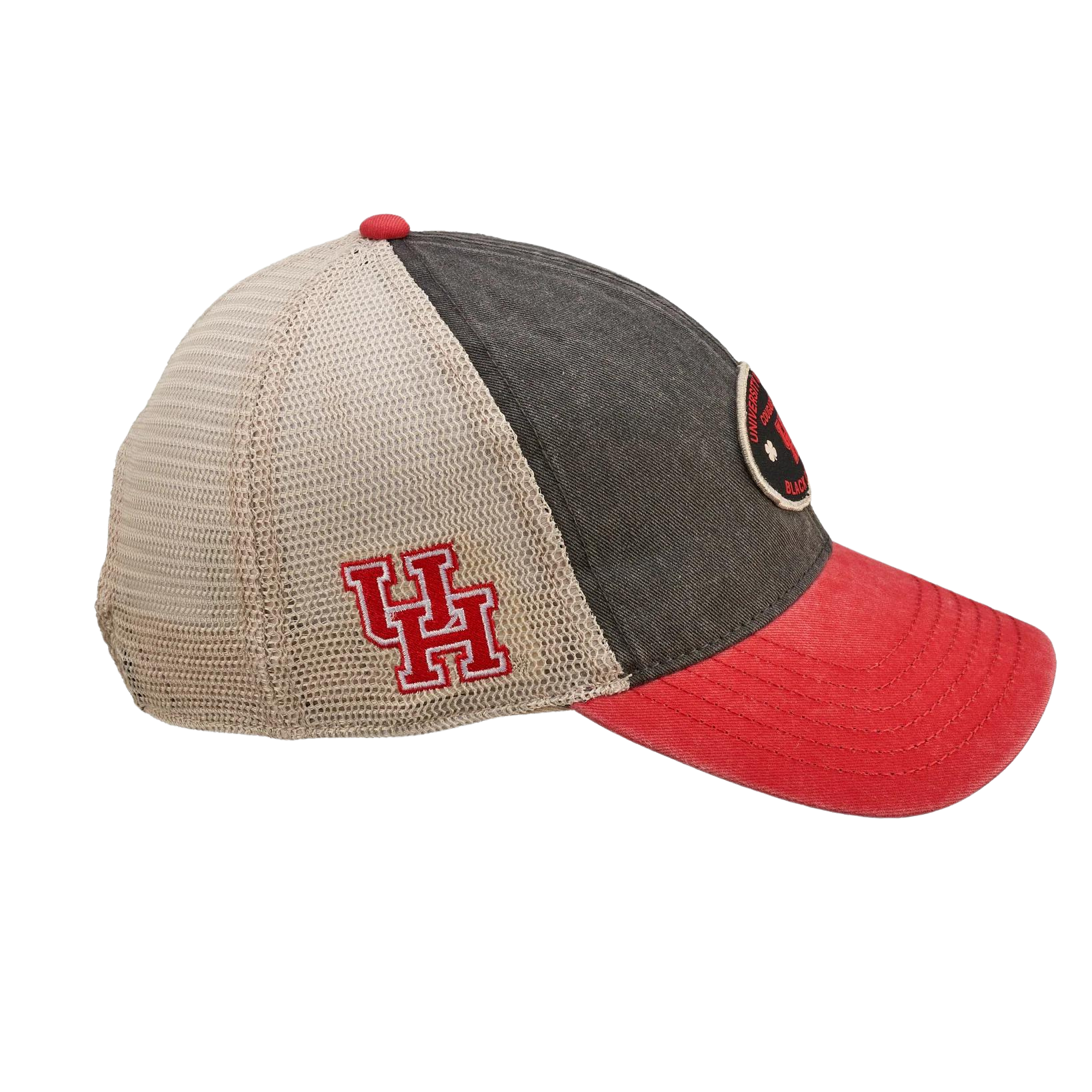 Breathable Mesh Backing + Adjustable Fit. Add some UH spirit with the University Houston Retro collegiate headwear. Built with premium vintage washed cotton, this eye-catching black and red hat features a red brim and stone mesh for a cool, breathable fit. The front of the hat boasts a patch with a tribute to UH, and the adjustable snapback ensures a perfect fit every time. This stylish hat is a perfect way to showcase your team spirit and an ideal addition to any casual wear.