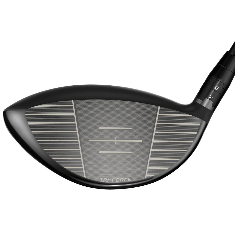 Unreal speed, distance, and spin consistency - even on off-center hits - made possible by a breakthrough Tri-Force face that layers ultra-thing, high-strength Titanium, poly Mesh, and carbon fiber into a fully integrated speed system - a combination never before used in driver face design.