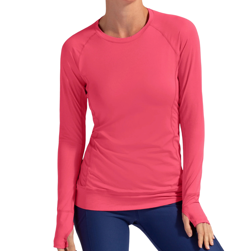 Ladies get a stylish upgrade to the classic sun shirt with the BloqUV 50+ UPF performance pullover. A looser torso fit, ruched back panel and banded waist ensure you’ll look great in the sun and the shade. Perfect as a sun shirt, rash guard or SPF swimsuit coverup. Wear it for running, walking, swimming, boating, biking, paddle boarding, tennis, golf or looking sharp as you run errands.