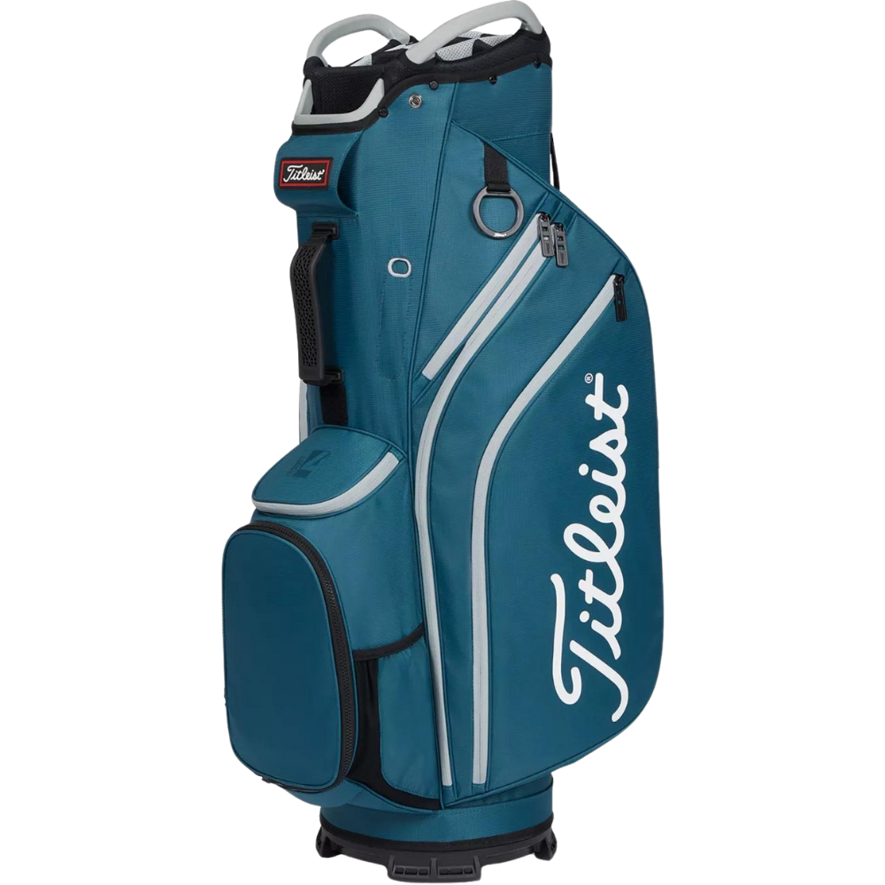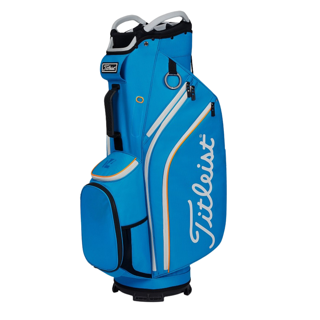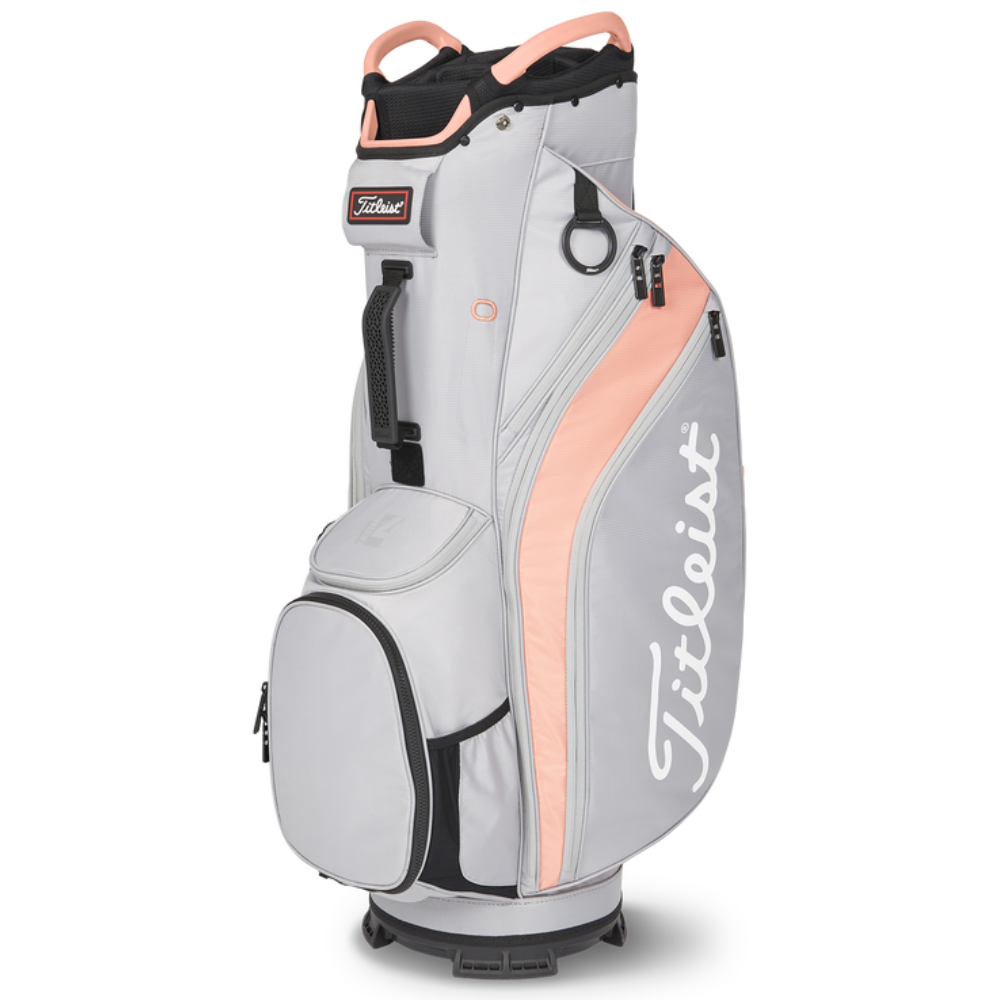 The Cart 14 Bag includes a lightweight, symmetrical design with 10 cart-accessible pockets for improved storage and convenience on the golf course.