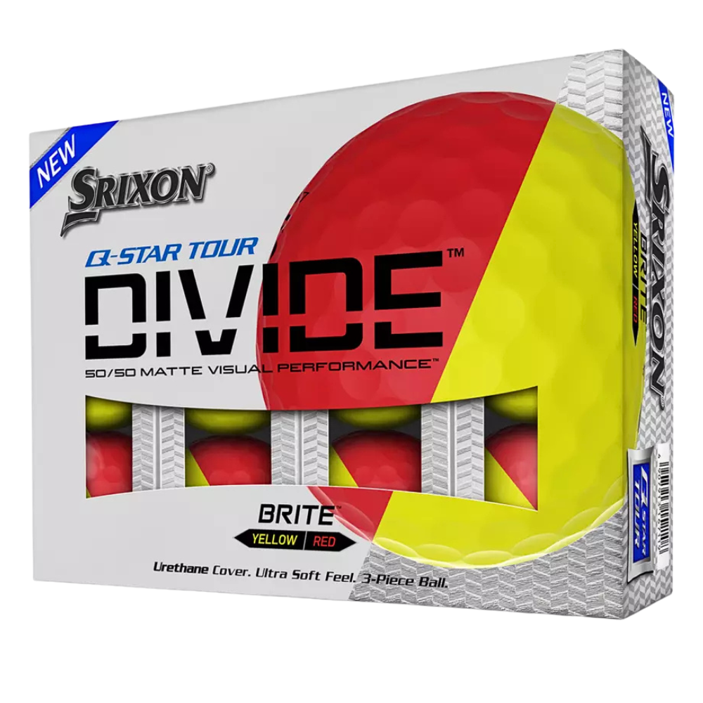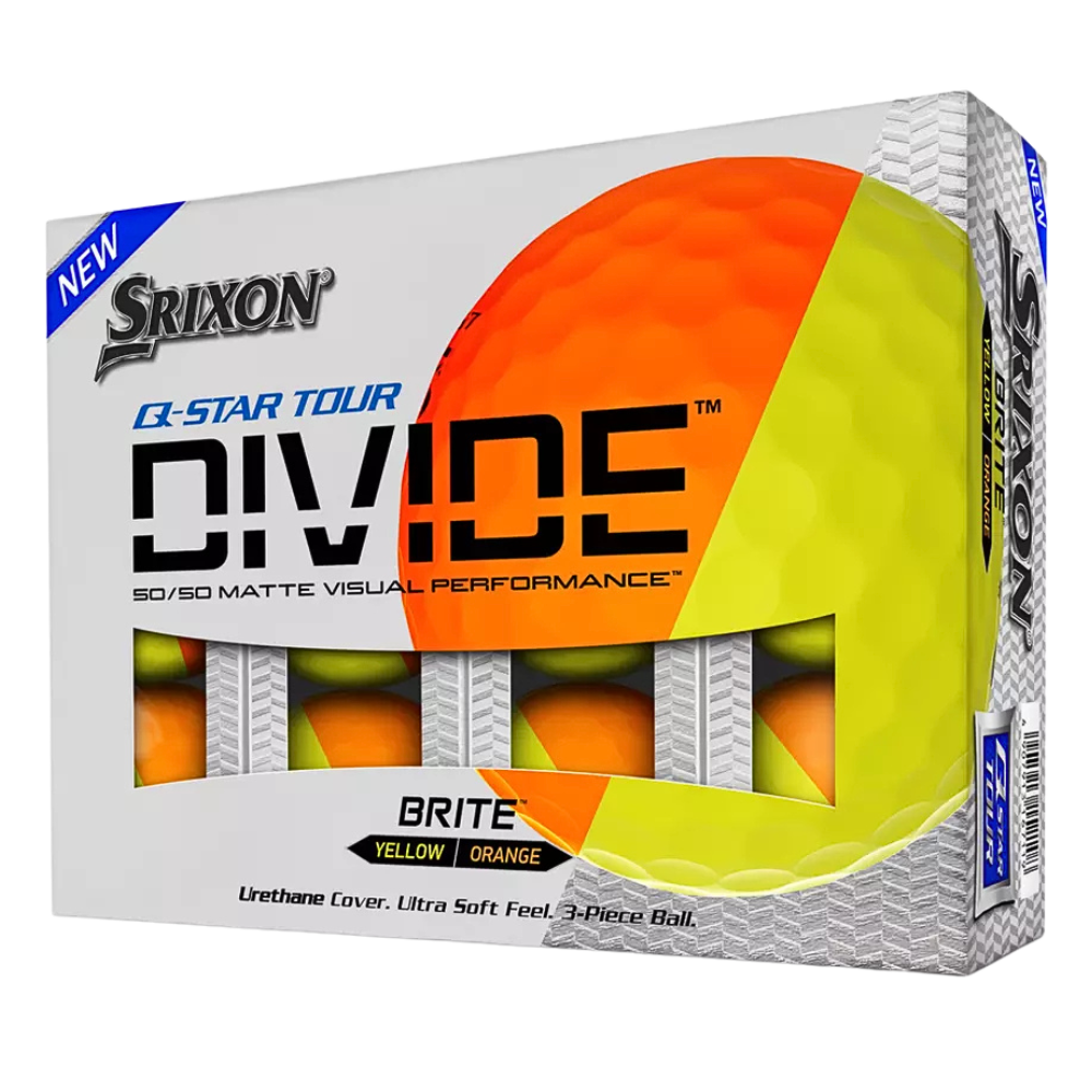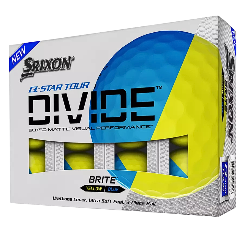 Srixon Q-Star Tour Divide Golf Balls feature a 50/50 matte urethane cover with yellow on one half and blue on the other, making spin visible and putting alignment easier than ever. Q-Star Tour Golf Balls are Srixon's softest ball with tour-level performance. Fast Layer technology and the largest core in its class make the ball fast of the face and long off the tee. The new SeRM urethane cover delivers one-hop stop control around the greens.