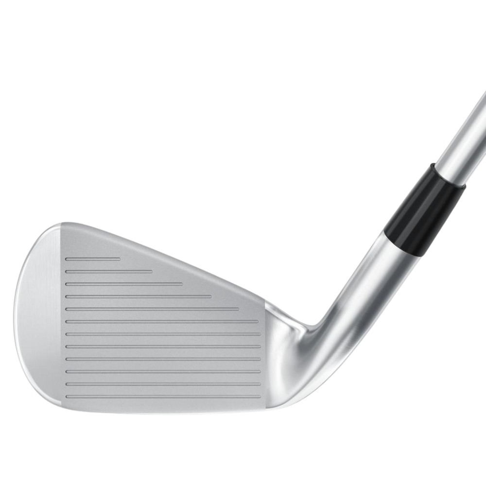 - Multi-Material Construction with Tungsten Weighting: Tungsten is positioned low in the 4-7 irons, creating a low sweet spot and a higher launch, producing a steeper landing angle
