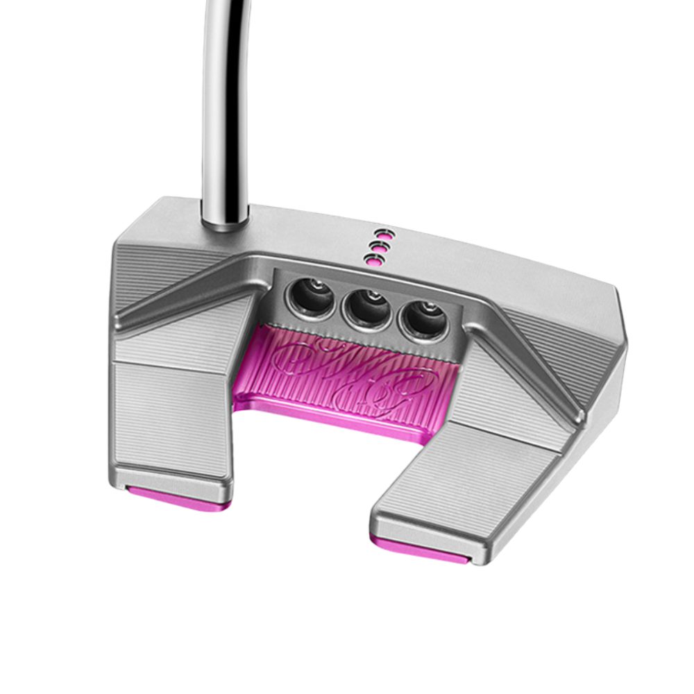 A stylish Pink & Pearls shaft ring anodized in bright dip pink accents an elegantly embroidered, diamond quilted patterned My Girl headcover, while a white Pistolini Plus grip complements a double bend stepless steel shaft for near-face balanced performance. A limited number of 2025 My Girl Pink & Pearls putters will be available.