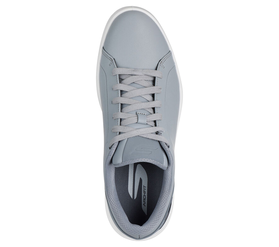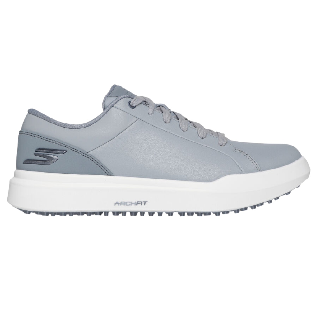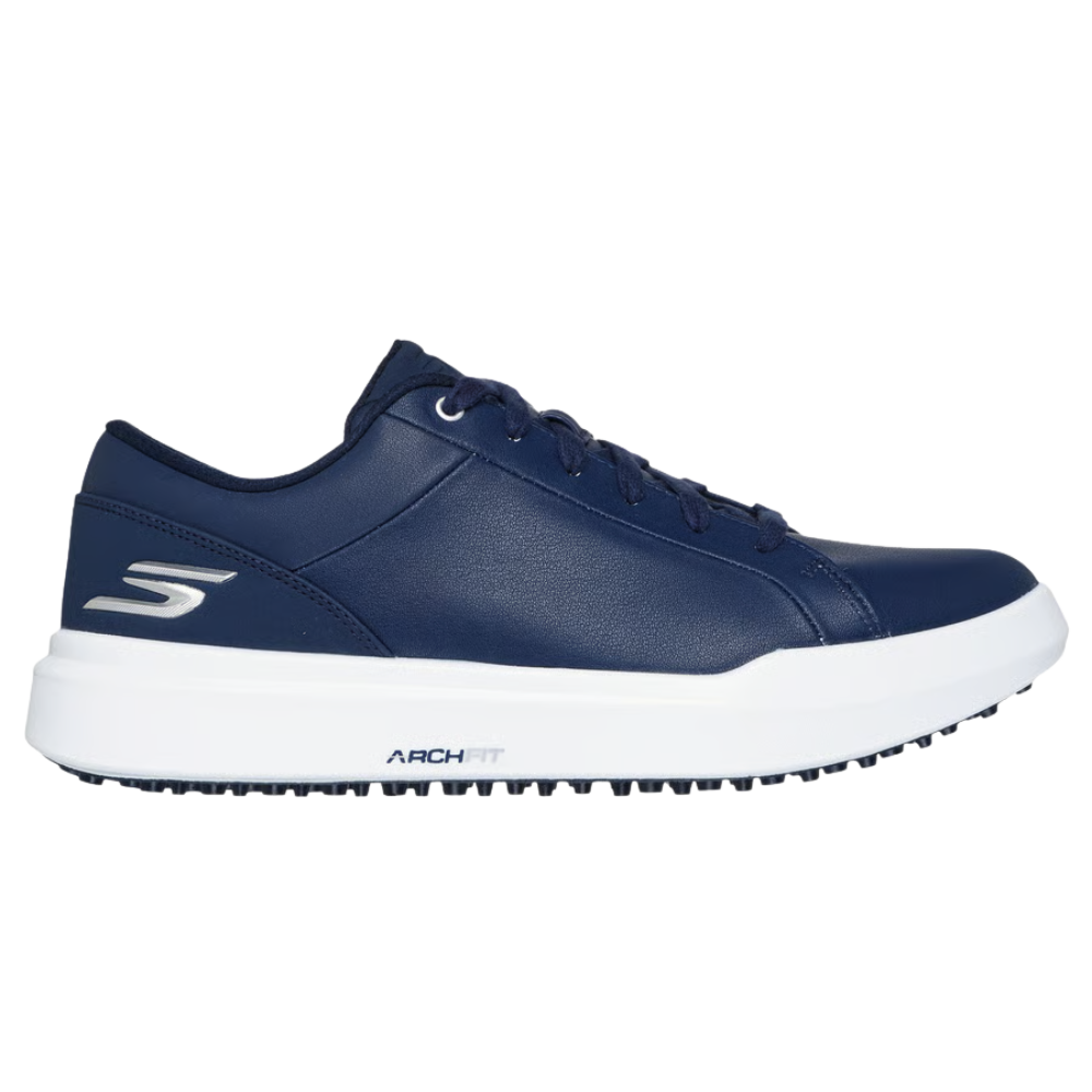Win every round in sleek, durable comfort wearing Skechers Relaxed Fit: GO GOLF Drive 6. This spikeless waterproof design features a premium full-grain leather upper with a lace-up front, removable Arch Fit supportive insole, and a stabilizing Goodyear Rubber Outsole.