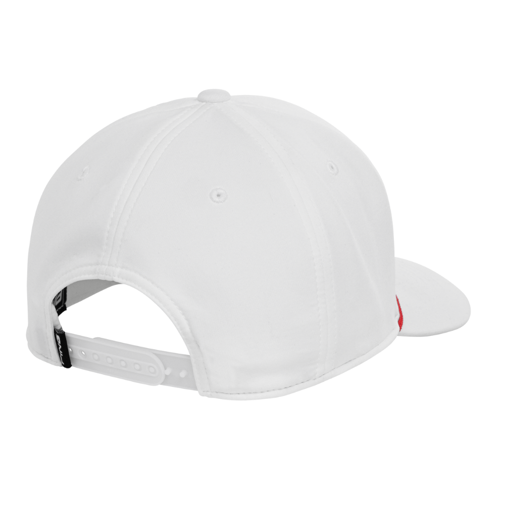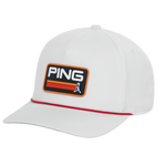 On this bright, dynamic design the legend himself, Mr. PING, lines up his next shot on a large silicone patch, the color bars behind him forming a striking pattern. The color-coordinated rope bill is a quality accent on this structured cap, which has a snapback closure to ensure one size fits most.