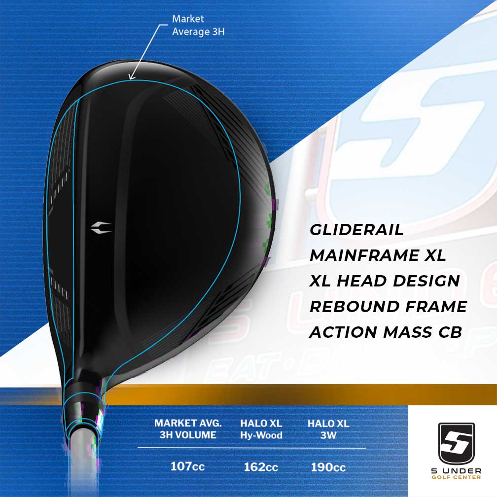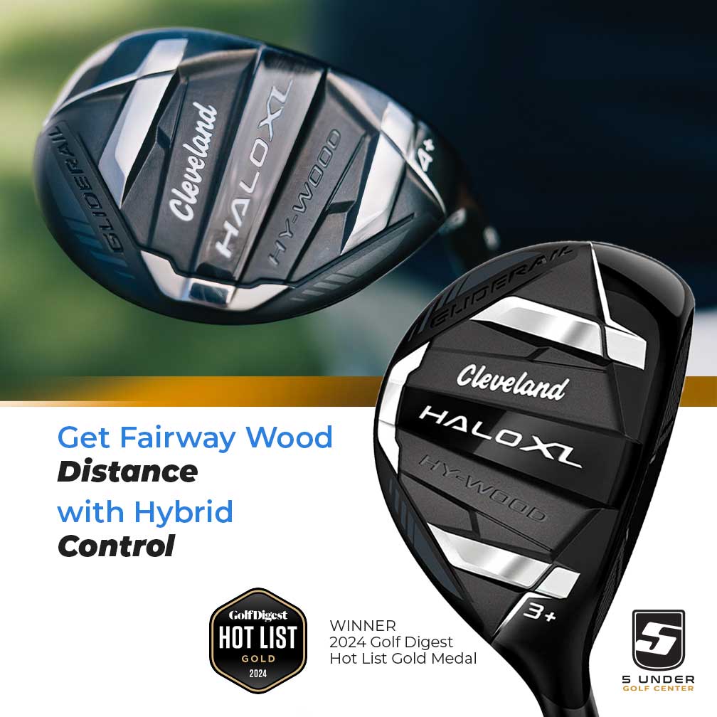 Fusing the distance of a fairway wood with the control of a hybrid, Cleveland HALO XL Hy-Woods are specifically engineered to be a more friendly, easier-to-hit fairway wood replacement. The Hy-Woods' head size, shape, and shaft length fall directly between fairway woods and hybrids, while its lightweight shaft increases swing speed without added effort.