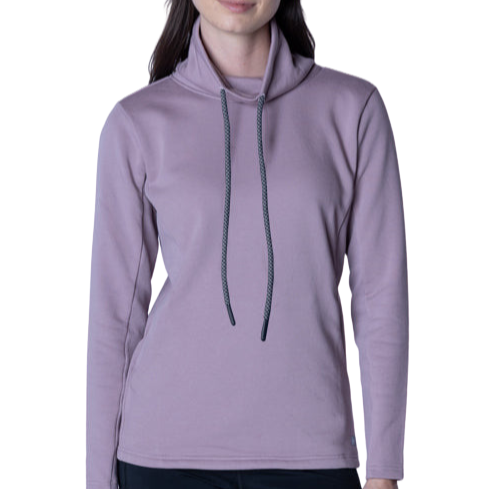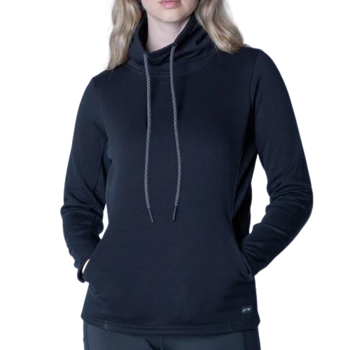 This Levelwear Verve Ladies Loop Pullover is stylishly made with a high funnel neck, branded drawcord, and ribbed side panel.