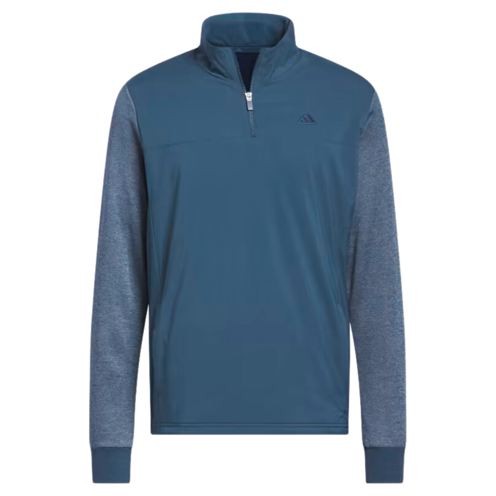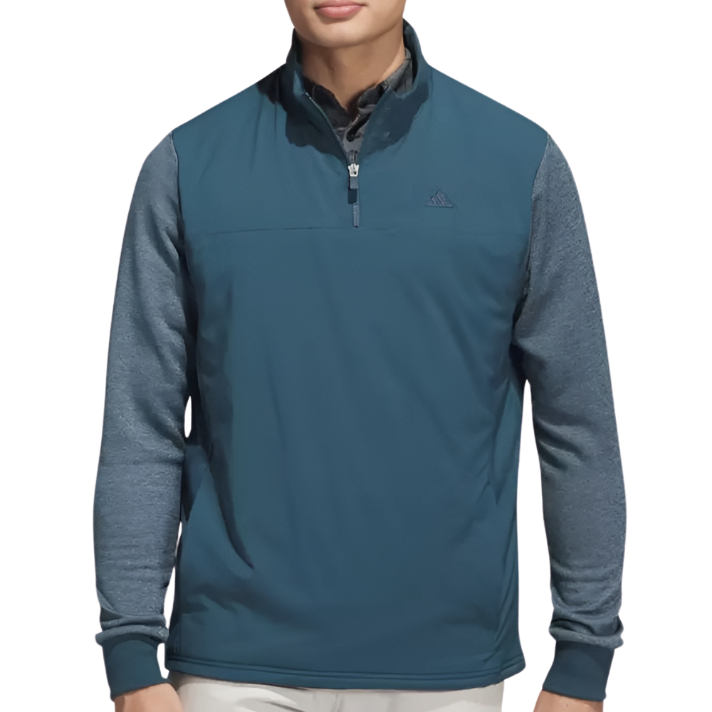 Staying comfortable during cold-weather rounds is all about layers. Pull on this quarter-zip adidas golf jacket to stay warm from the first hole to the last. A water-repellent finish shrugs off moisture, while ribbed cuffs and a stand-up collar seal out the chill. Soft fleece on the arms lets you move freely through your swing. Made with a series of recycled materials, and at least 70% recycled content, this product represents just one of our solutions to help end plastic waste.