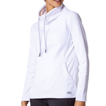 This Levelwear Verve Ladies Loop Pullover is stylishly made with a high funnel neck, branded drawcord, and ribbed side panel.