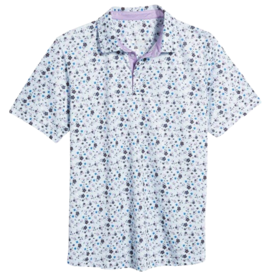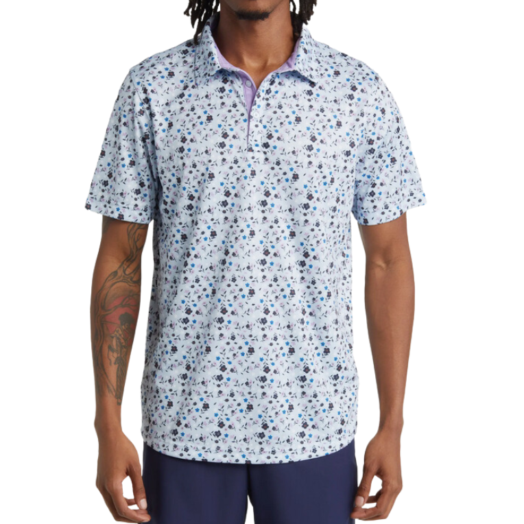 A blooming pattern emboldens a sporty short-sleeve polo crafted from REPREVE® recycled polyester for comfortable style on or off the course.