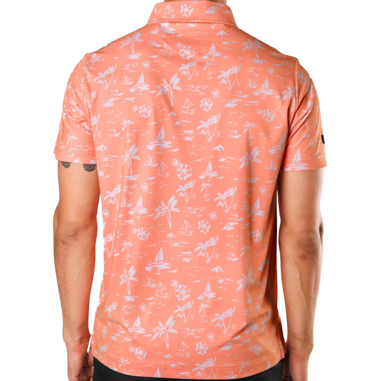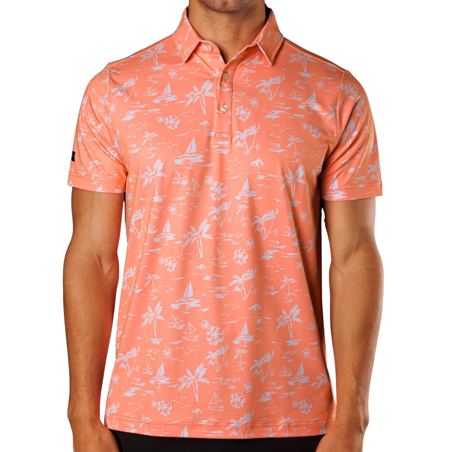Style meets performance with our premium technical fabric. Our men's golf polos are designed with a 4-way stretch, UPF 40 sun protection, moisture wicking technology and a breathable poly spandex blend that is wrinkle resistant.