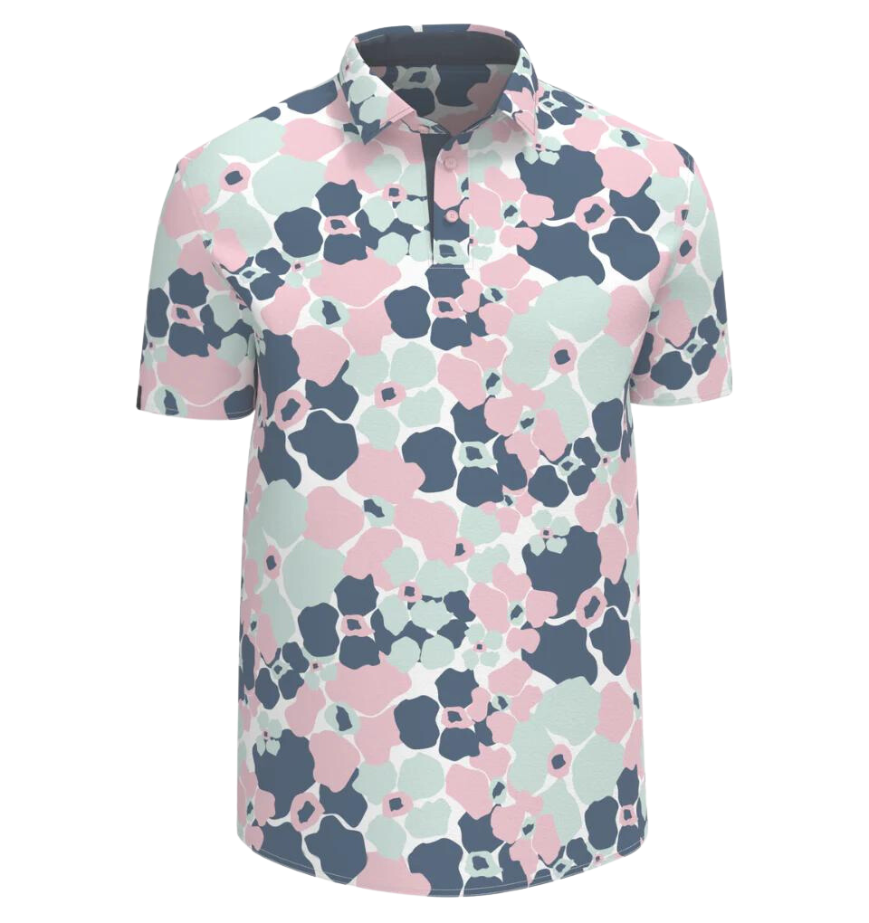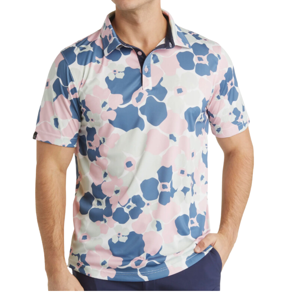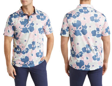 Give your greens look a fresh update in this abstract-floral polo cut from an easy-moving stretch fabric that breathes for cool comfort on the course. Is this a tribute to everyone's favorite Pet Detective or to that elusive "1" on the scorecard? Who cares. They're both perfect.