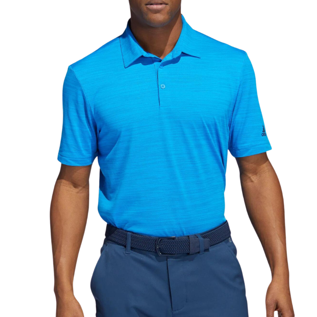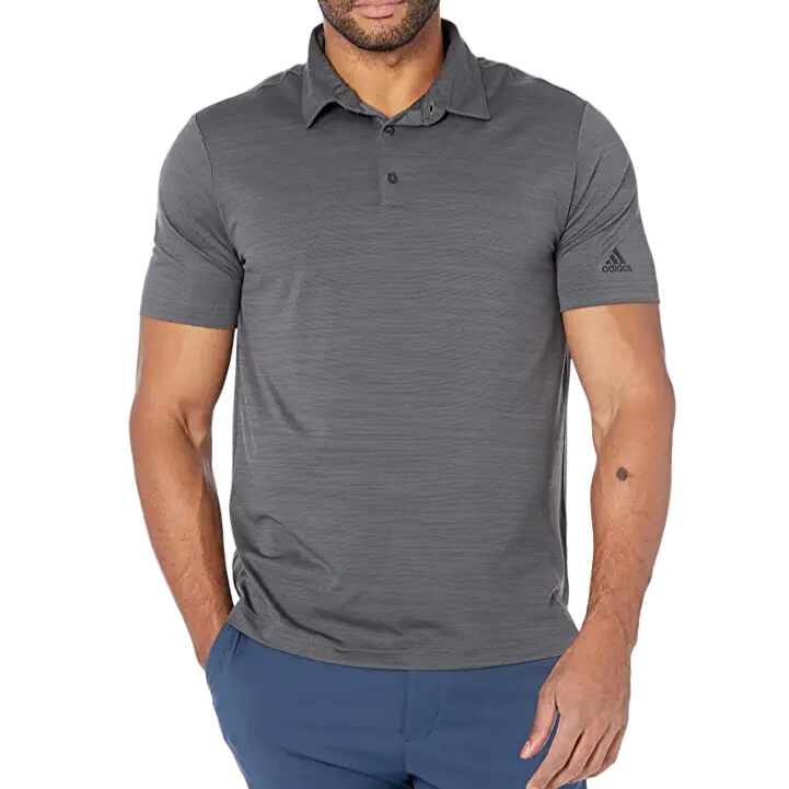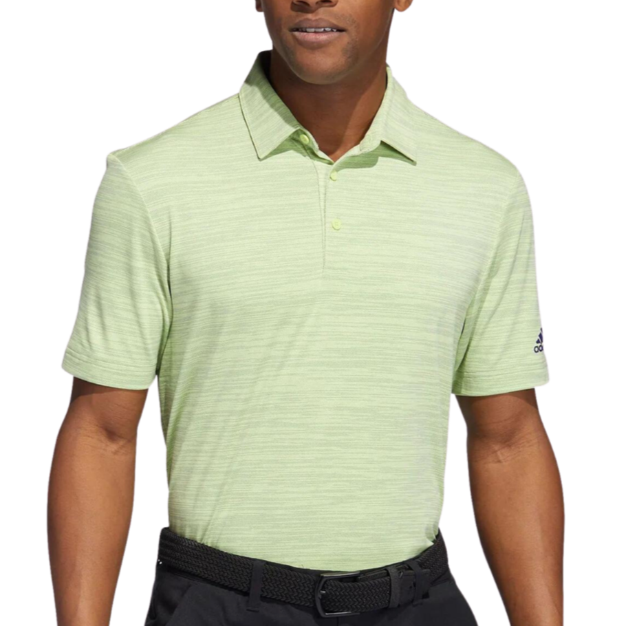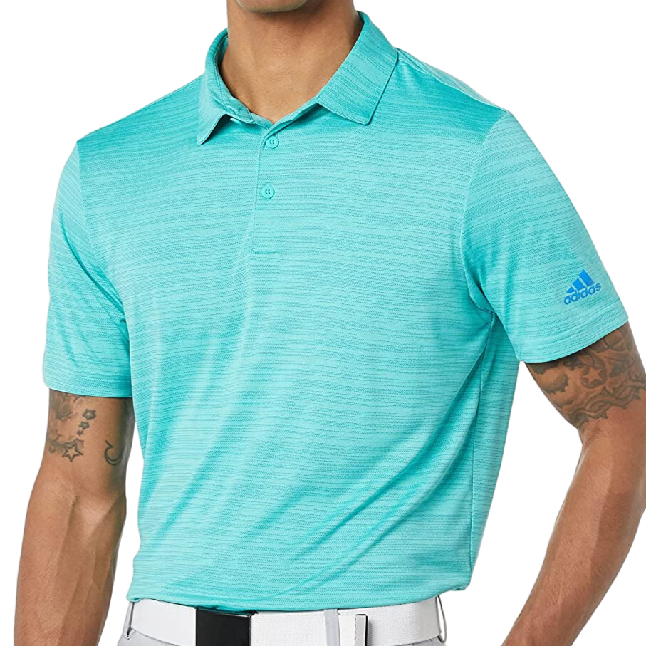 Bring a modern look to your game with the Adidas Space-Dyed Striped Mens Golf Polo. A pique build feels soft and comfortable against your skin while a space-dyed fabric adds extra style. A slightly longer back hem helps keep your shirt tucked in for undistracted play.