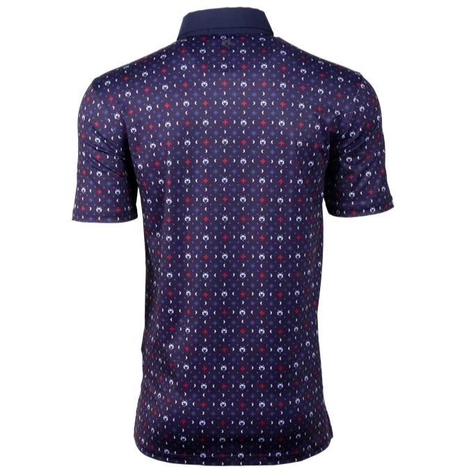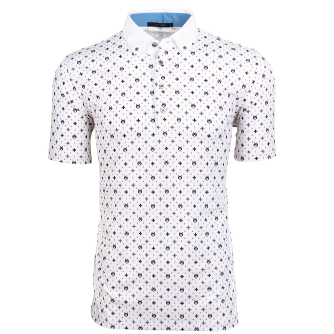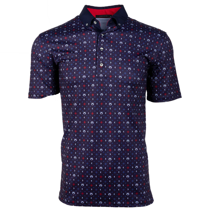 Wolves, stars, and the moon make up the striking all-over print of the Wolf Moon Polo. Constructed with poly-blended fabric, this printed golf polo is both antimicrobial and moisture-wicking. Finished with a tonal collar and a four-button placket.