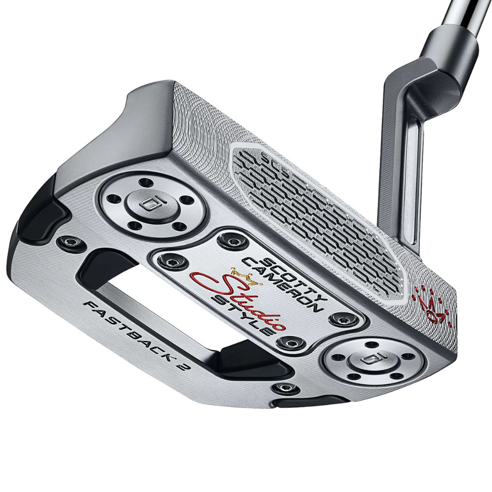 The Studio Style Fastback 2 features the same modern mid-mallet profile as the Studio Style Fastback but features a plumbing neck for moderate toe flow. The rounded, compact head shape features a multi-material construction with a black anodized aluminum heel-toe inlay, which helps increase perimeter weighting and MOI while providing a high-contrast alignment feature.