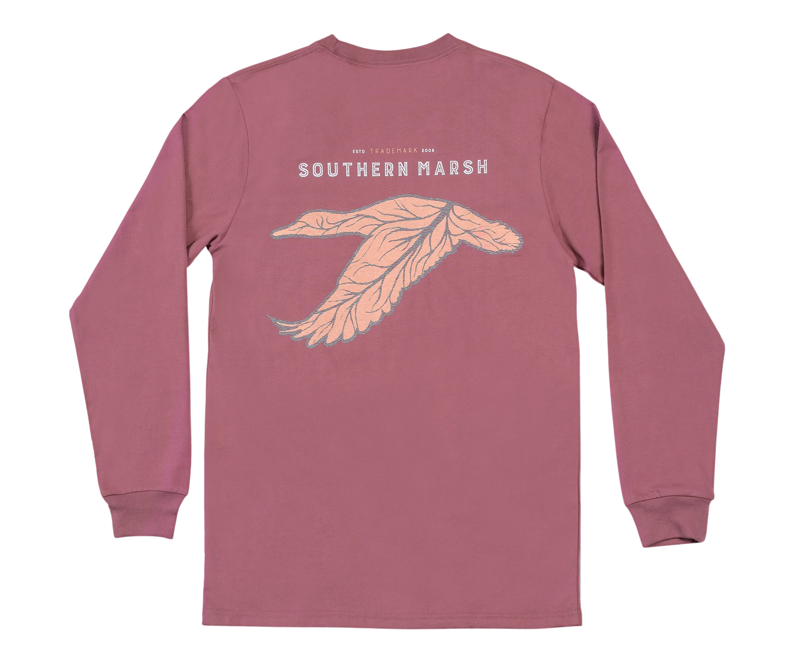 Done in a custom duck design with an ultra-soft cotton-poly fabric, the Delta Duck Tee is a great addition to your fall wardrobe. We've finished it off with our mallard silhouette logo on the front pocket and a printed tag for comfort. Get ready to impress with our custom duck design and ultra-soft cotton-poly fabric of the Delta Duck Tee. You won't find comfort like this anywhere else! Perfect for a cozy and stylish addition to your fall wardrobe. Our mallard silhouette logo on the front pocket and printed tag add the perfect finishing touches.