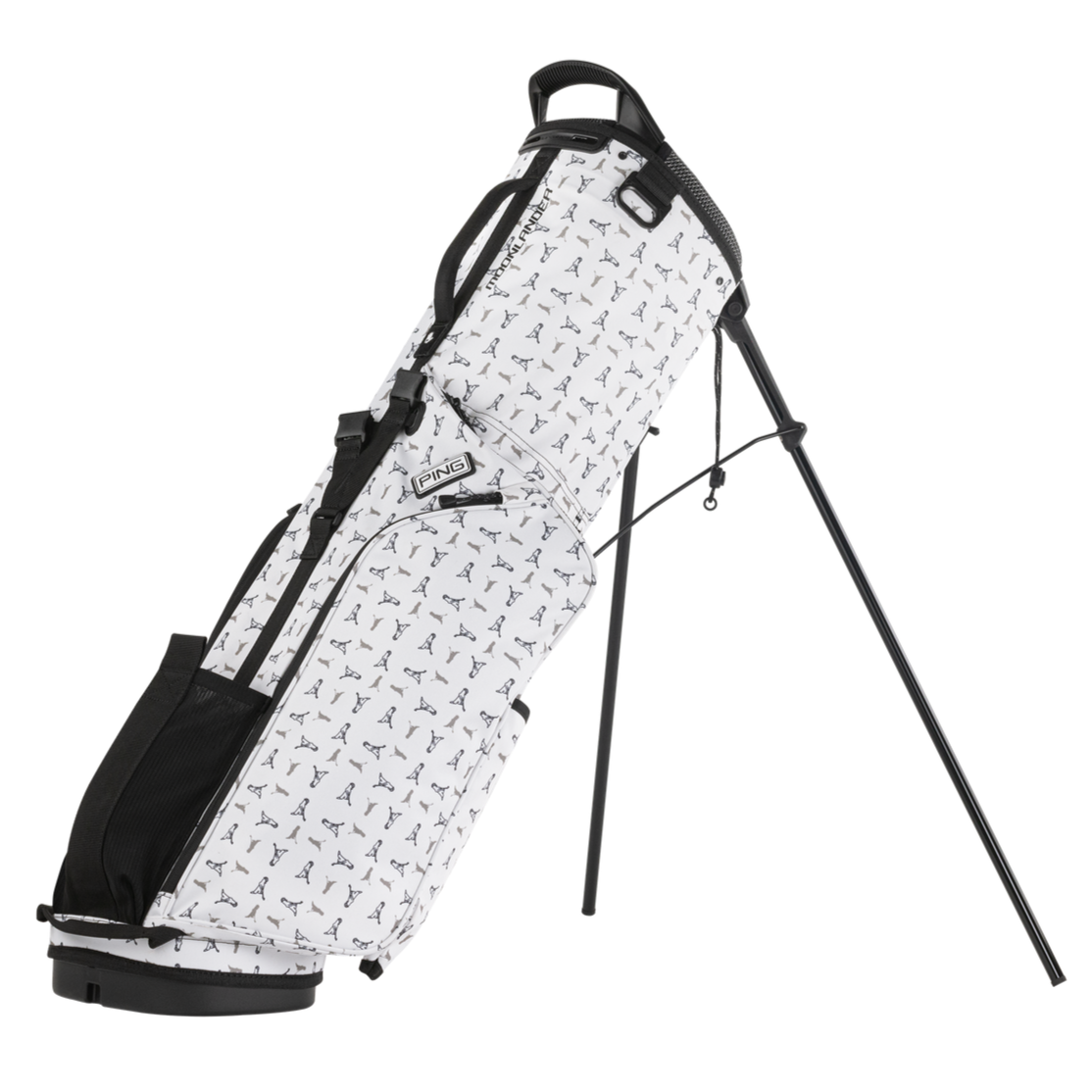 Introducing Moonlander, designated for the walking purist who favors a simpler, cleaner design with only enough pockets for essentials. It is light, only 4 ½ lbs., and has six pockets, including for a rangefinder, water bottle, and light apparel. Juniors can transition to this adult-size carry bag by adding Prodi G club risers to fit the length of their clubs. Straps are convertible to a single or double carry.