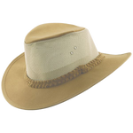 The Bush Soaker, from the Mesh Safari Collection by Dorfman Pacific offers a rugged and stylish look for the outdoors. The Bush Soaker boasts a 2 3/4" brim with an Australian crown. This outdoorsman hat features stiff mesh sides with side eyelets for ventilation. Also comes with a braided leather band and an elasticized sweatband helping to ensure a comfortable fit. Made from canvas.