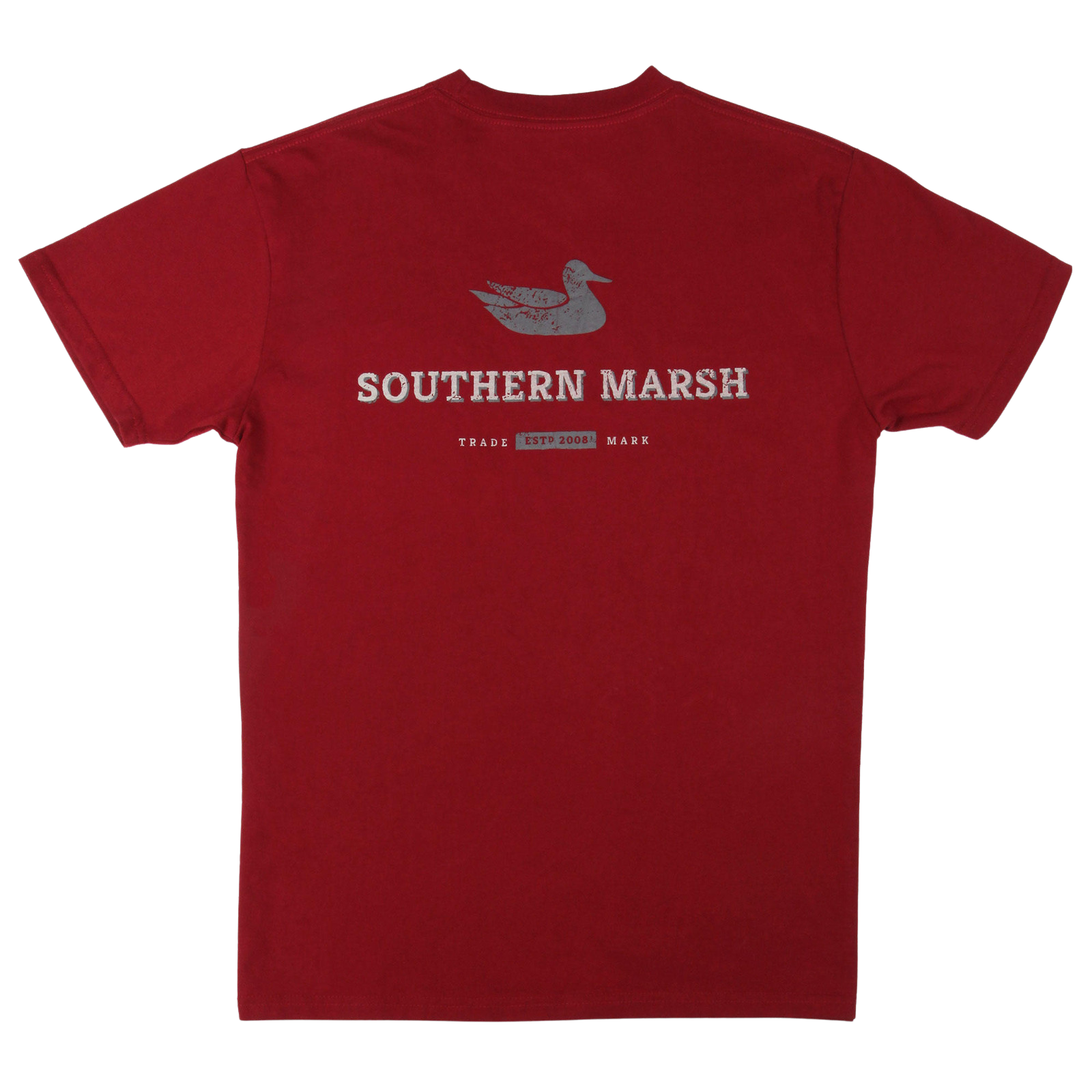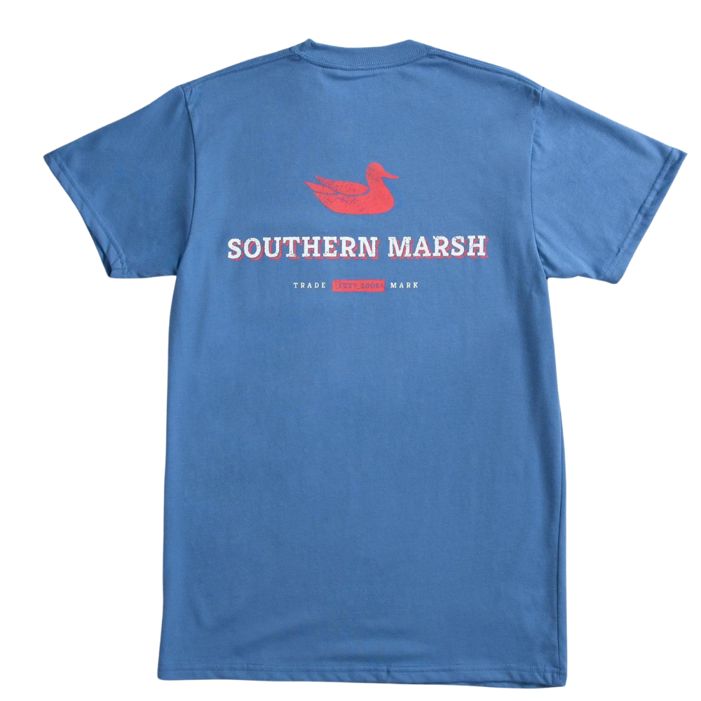 Traditionally cut and pre-washed for comfort, this custom Trademark design is printed on an ultra-soft combed cotton-poly fabric and finished off with our limited edition Trademark logo on the front pocket. Transform your wardrobe with the incredibly comfortable and stylish Southern Marsh Trademark Duck T-Shirt. Made with a high-quality combed cotton-poly fabric that has been pre-washed for added softness and durability, this shirt will become your go-to for any occasion. And with the added touch of our signature Trademark logo on the front pocket, you'll stand out and make a statement wherever you go!