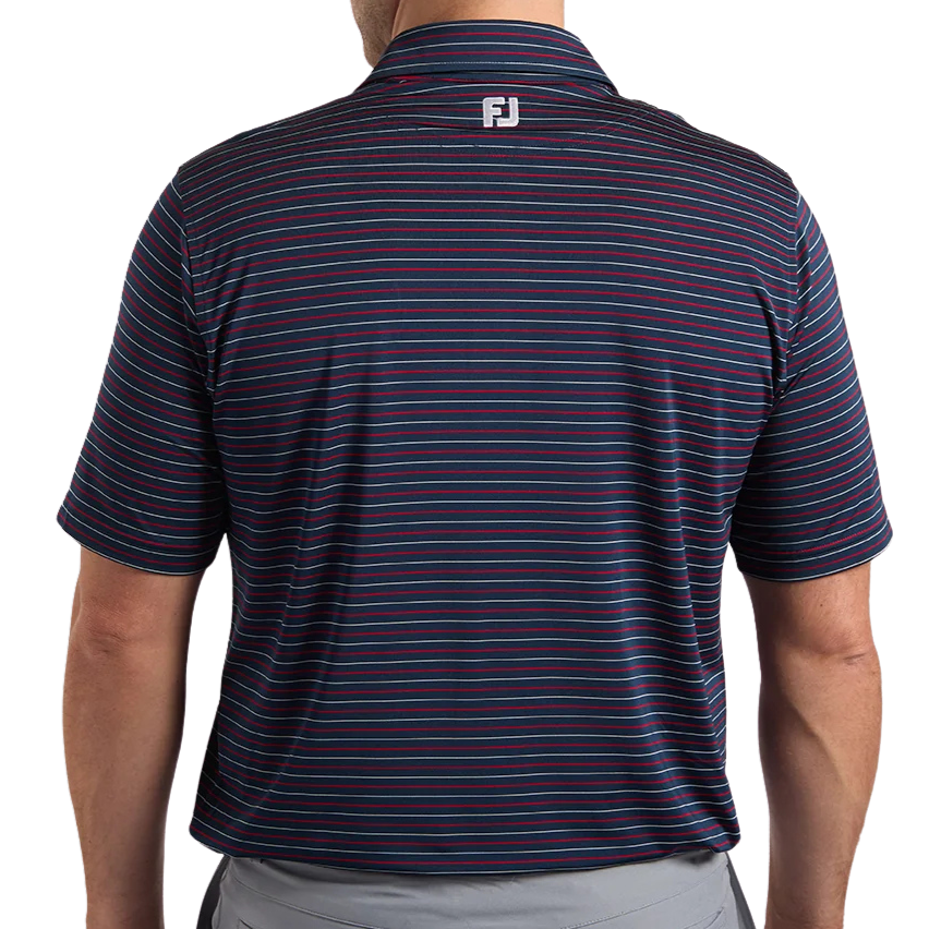 This custom designed polo in navy with red and white alternating stripe pattern includes the 2025 Ryder Cup official patch affixed via embroidery on the left chest. Includes all the usual FootJoy features - machine washable fabric, ProDry fabrication, anti-microbial technology and reinforced construction for a tailored look.