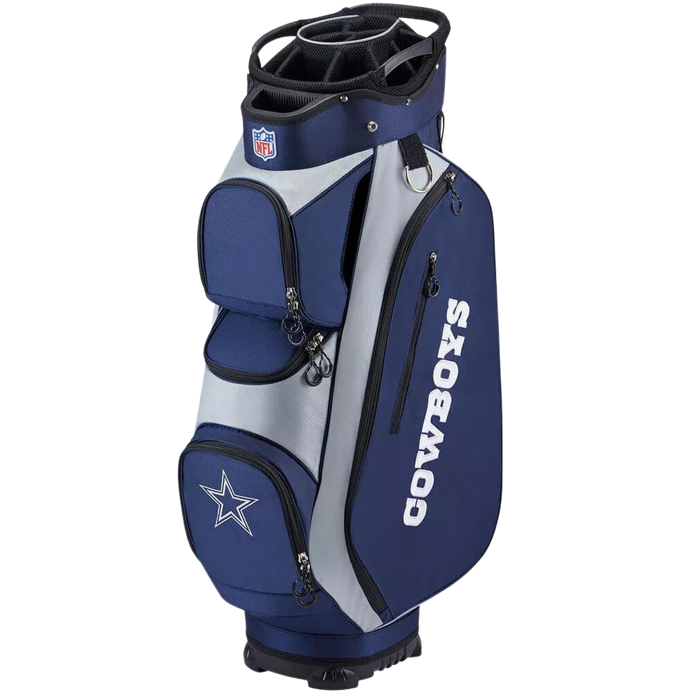 Tee off with the Wilson NFL cart golf bag and show off your favorite NFL team every time you hit the course. Fully loaded with plenty of storage, premium embroidered logos, a trolley anchor base and cart strap, this bag makes it easy to take your favorite NFL team from the tee box to the club house. Features 14 Full-length dividers for organization and separation of clubs Strong polyester fabric for optimal durability through travel and weather conditions XTRA technology allows the base to fit securely in a riding cart or golf cart.
