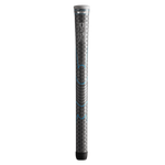 This ladies' or undersize Dri-Tac grip has a cushioned, comfortable feel and remains tacky in all weather conditions. It has a light gray color with striking blue paint lines and a stylish grey end cap.