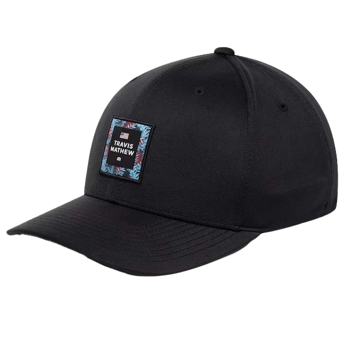 We've got Summer's FINEST snapback hat right here. With a stacked TravisMathew graphic surrounded by a red, white, and blue floral border and an American flag accent, this is one hat that delivers everyday summer style.