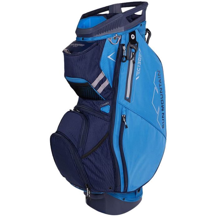 Updated for 2023, the C-130, Sun Mountain’s best-selling cart bag, was created to work optimally on a cart. All features are designed with cart use in mind, starting with the reverse orientation top with three utility handles, cart bumpers, the Smart Strap System and a convenient, roomy, velour-lined rangefinder pocket with a magnetic-closure. In addition, all pockets are forward-facing and accessible when the bag is on a cart. For 2023, Sun Mountain added an additional velour-lined pocket and streamlined the top. Flawlessly functional design. It's in the bag. Down to the smallest details.