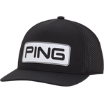 Comfort surrounds you, starting with 13% spandex (87% polyester), providing lightweight stretchability, the “cool” venting, and a moisture-wicking headband. The Delta is designed to retain its higher-profile shape so that bold Tour logo stays prominent, and there’s an adjustable snapback closure.