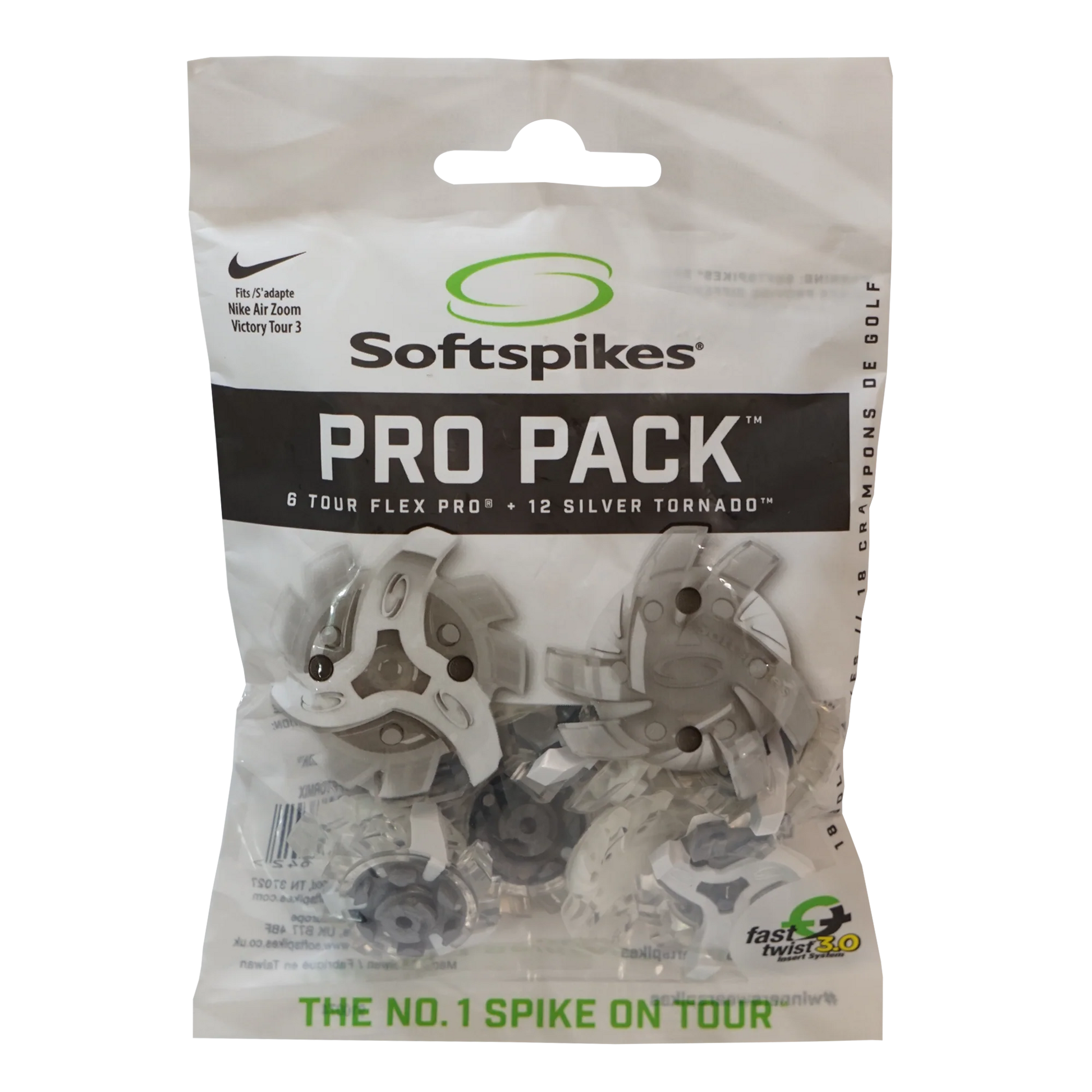 Pro Pack - Tour Flex Pro is the perfect combination of traction, comfort and performance with ten points of contact and three degrees of traction. The Silver Tornado's counter-rotational design provides the best level for balance and stability. The combination of these two spikes provides maximum traction, slippage resistance, and power delivery all the way through each swing. This spike configuration can be found on the Nike Air Zoom Victory Tour 3.
