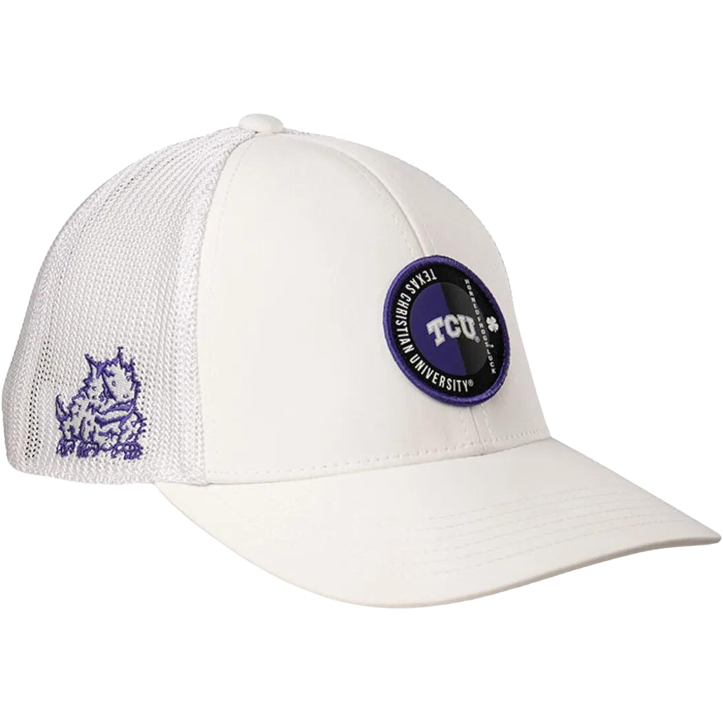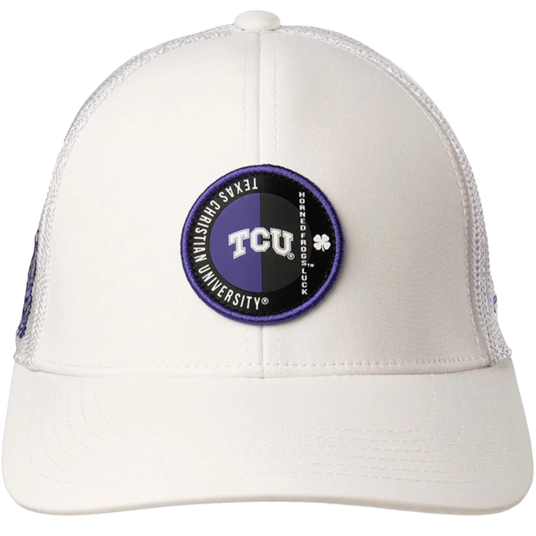 Make a statement at the game with the TCU Echo! This stylish snapback cap is constructed with Texas Christian University® performance polyester, and a mesh back for super breathability. Get ready to cheer on your team in cool comfort – it's game day ready! Rock this hat with Purple 'Live Lucky' stitched on one side and the Horned Frog on the other for double the style energy!