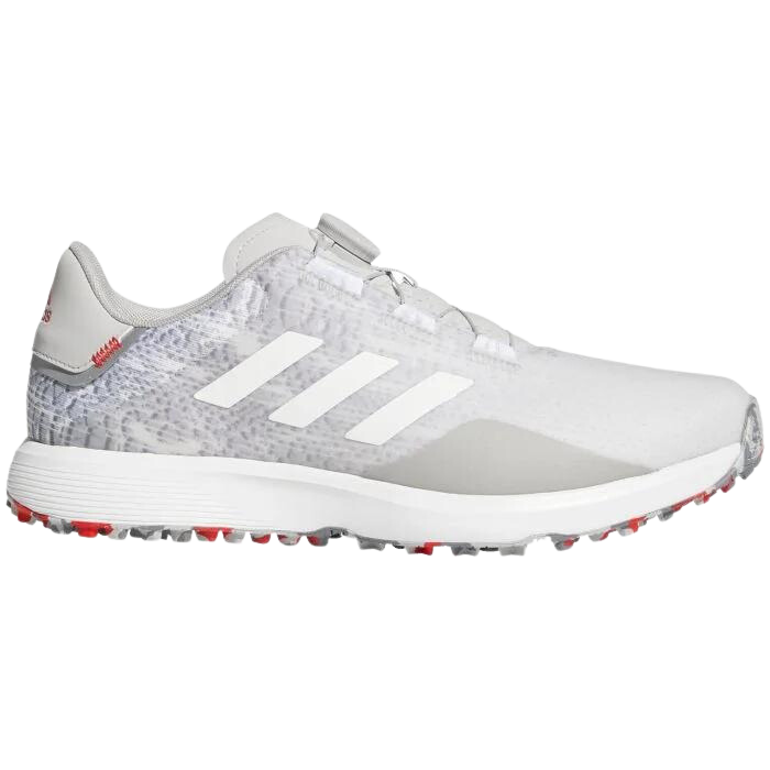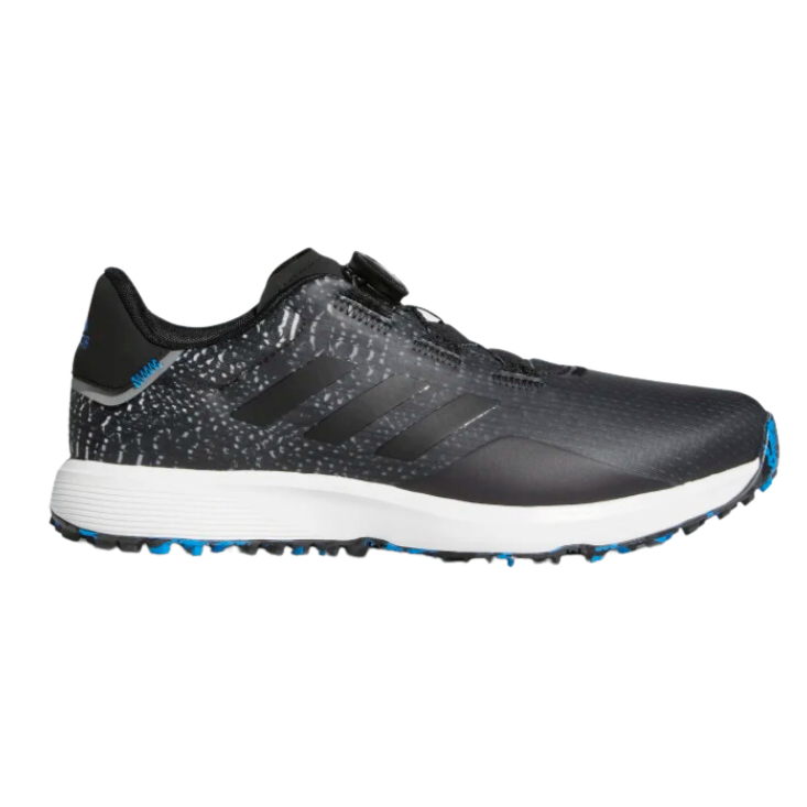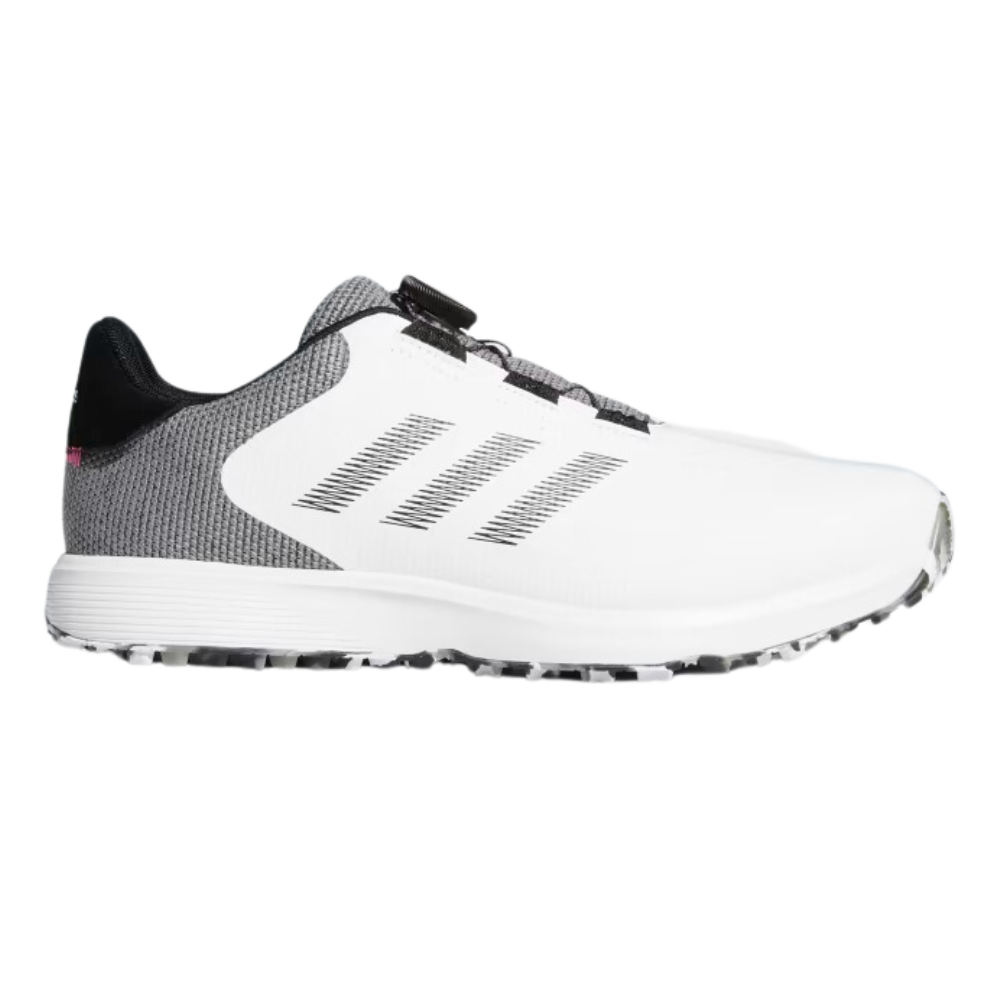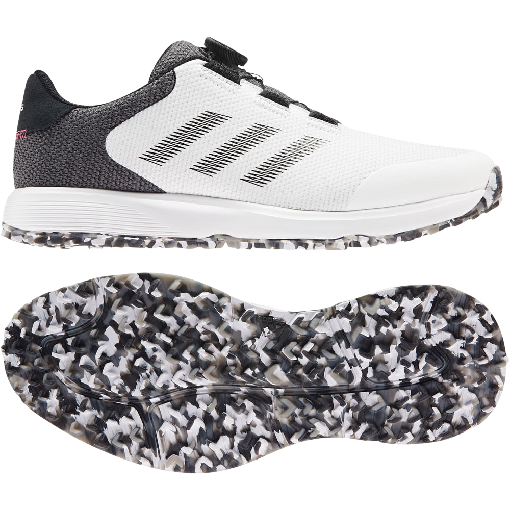 Golf shoes for versatile performance, made in part with recycled materials. Bring confidence to your game in these adidas golf shoes designed for versatile performance. The Bounce midsole cushioning offers comfort and flexibility through 18 holes and beyond. The V-Traxion outsole delivers solid grip for enhanced stability on variable terrain. The waterproof upper keeps your feet dry on damp fairways, and the BOA® Fit System lets you dial in a precise fit. The spikeless design ensures an easy transition from course to clubhouse. Made with a series of recycled materials, this upper features at least 50% recycled content. This product represents just one of our solutions to help end plastic waste.