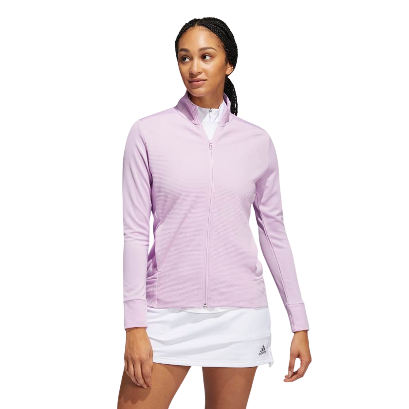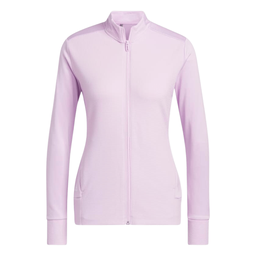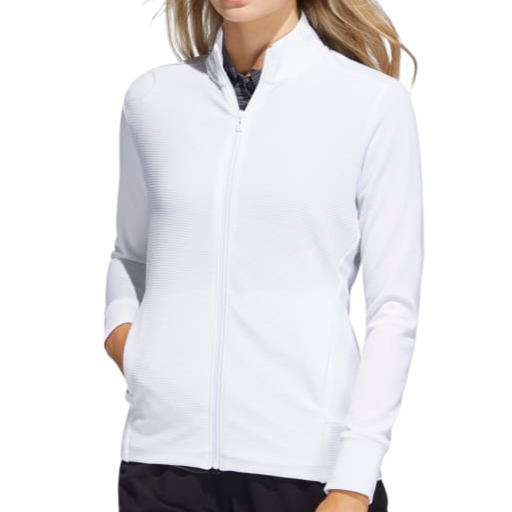 Make the most of conditions in this adidas golf jacket. The soft, textured fabric has built-in stretch so you can swing and reach without restriction. A high collar helps seal out the chill. The sleek style elevates your look on and off the course.