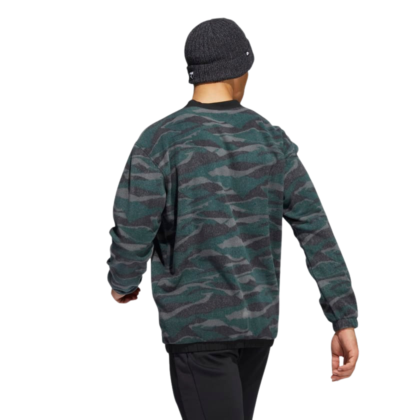 Make a statement without staying a word. This adidas golf sweatshirt brings fresh energy to your game with a links-inspired allover print. The soft fleece adds warmth for chilly mornings and cool afternoons on the course with style that carries you through to post-game social hour. It sheds light rain to keep you dry and playing through misty rounds and occasional showers.