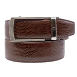 If you like the looks of our alligator embossed ratchet belts then you will really like the refined styling of the Camden with its richly embossed lizard skin and handsome buckle. It is a stylish compliment to your wardrobe.