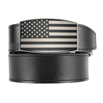 USA flag etched on black satin Aston buckle with a black smooth leather strap