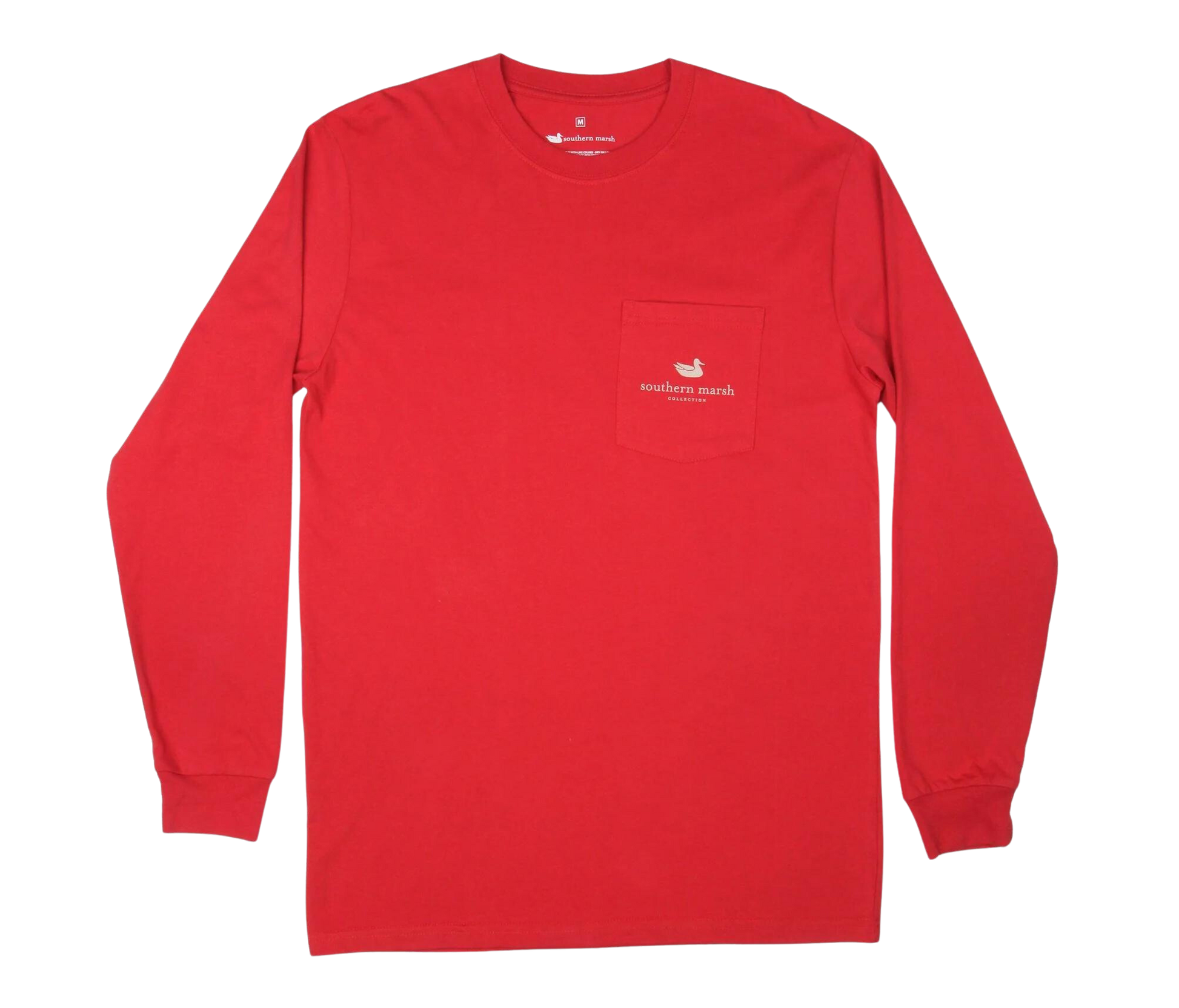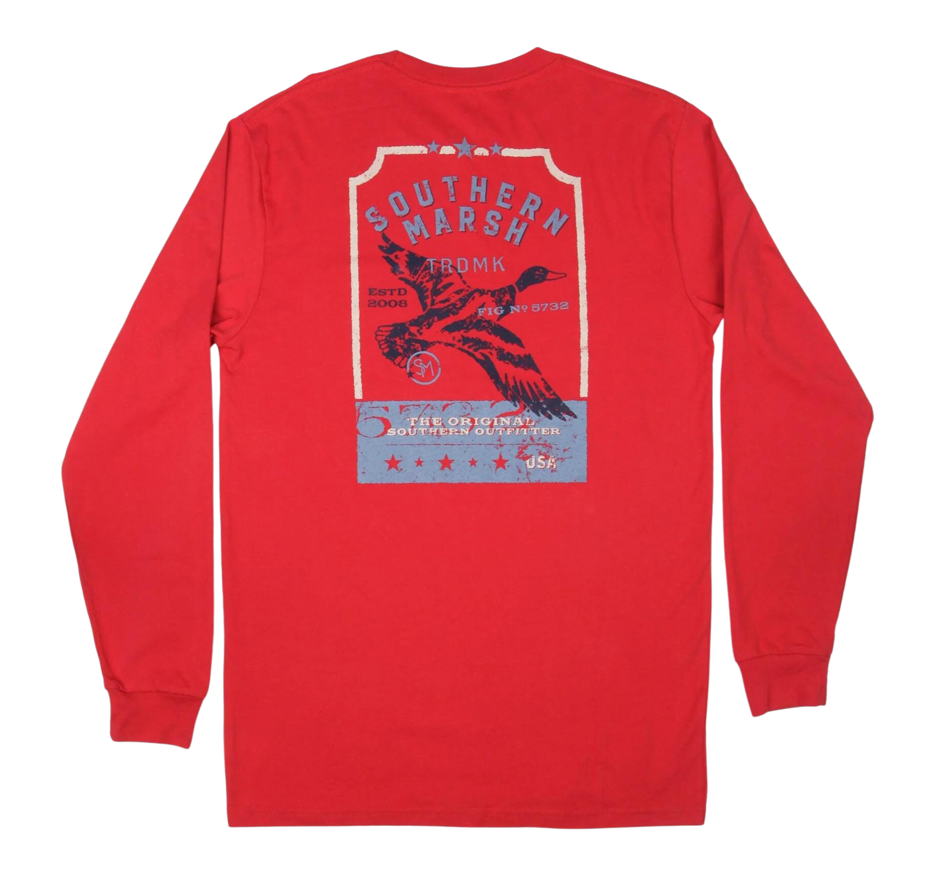 Experience the ultimate in vintage style with our Vintage Tag Duck Long Sleeve Tee. Made from a soft cotton-poly blend, this tee features unique vintage details and a custom duck design that adds a touch of authenticity. Plus, our iconic mallard silhouette logo is proudly displayed on the front pocket.